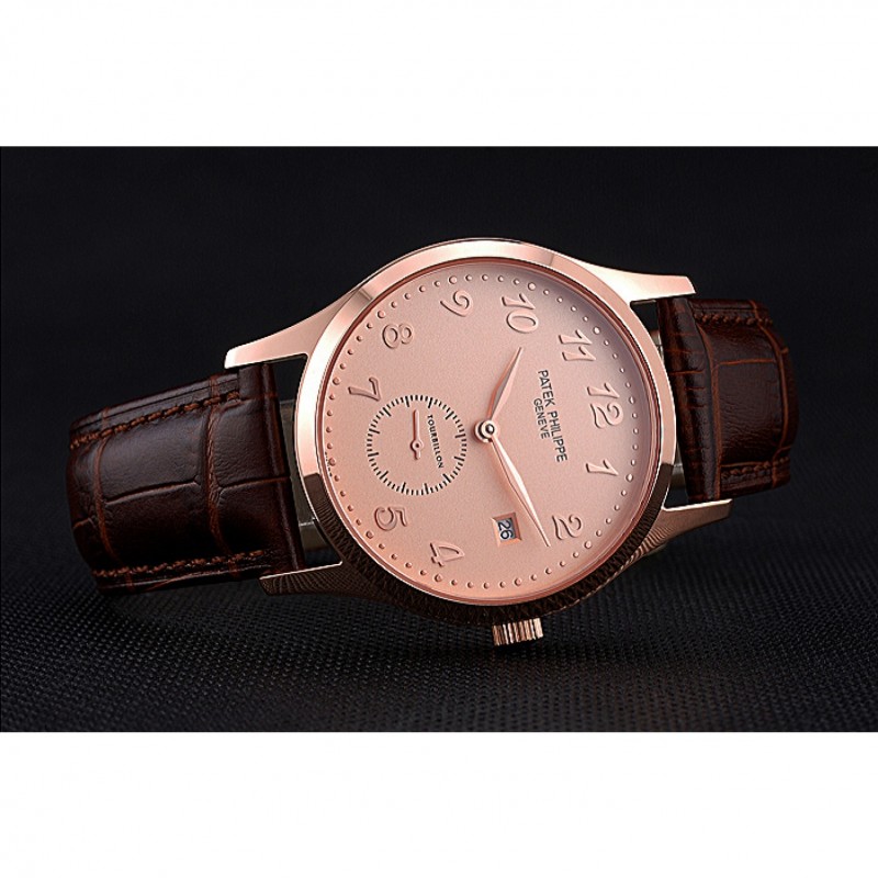 Inicio / Patek Philippe / Calatrava / Patek Philippe Rose Dial Oro Rosa Caso Brown correa de cuero 622836