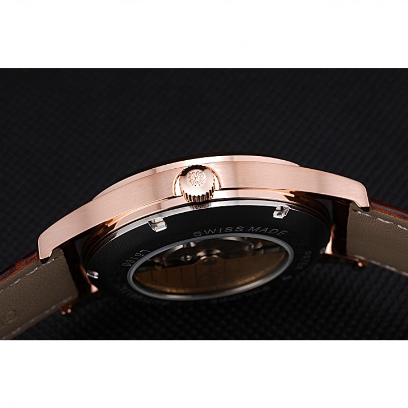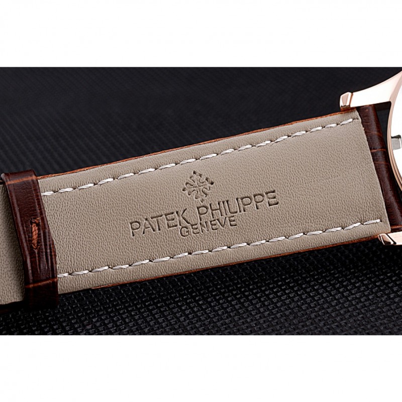 Patek Philippe Rose Dial Oro Rosa Caso Brown correa de cuero 622836