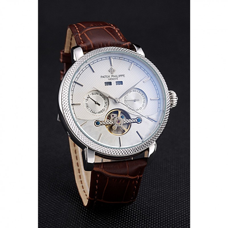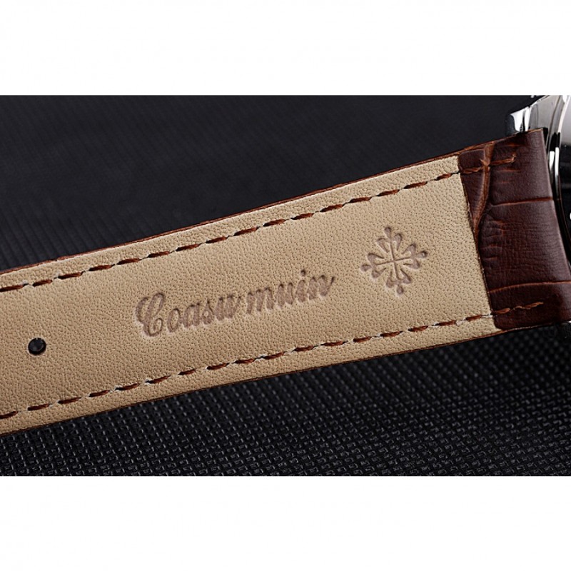 pulsera: Patek Philippe Geneve y el calor logotipo en relieve de piel de cocodrilo marrón correa con acero inoxidable pulido gancho hebilla de cierre