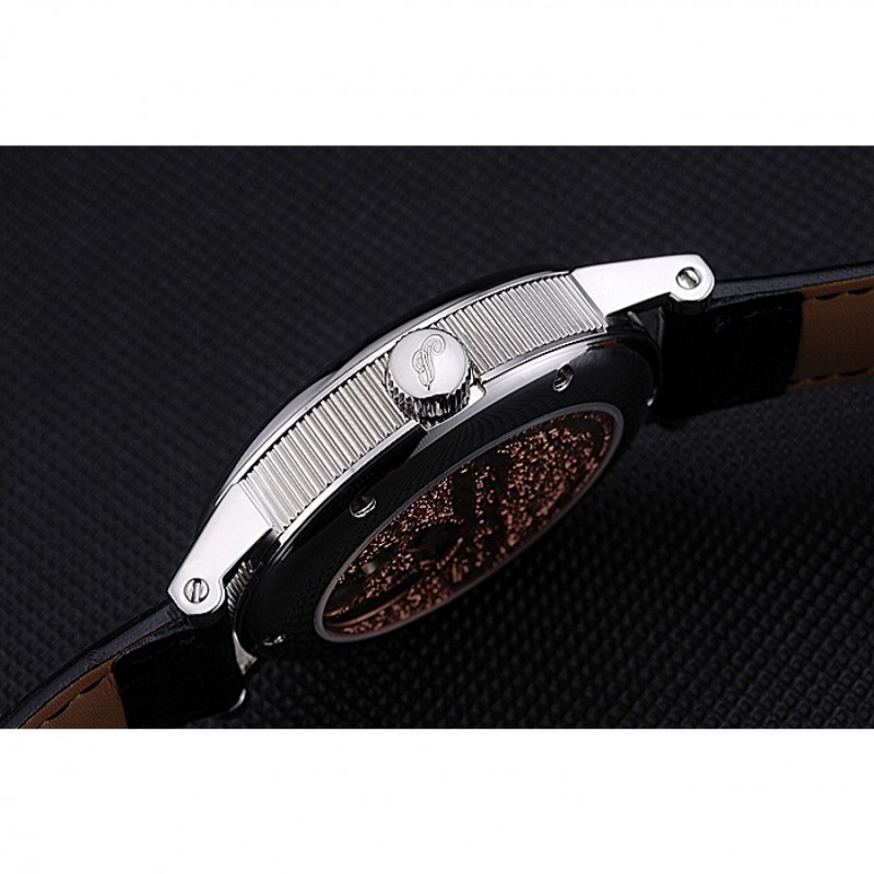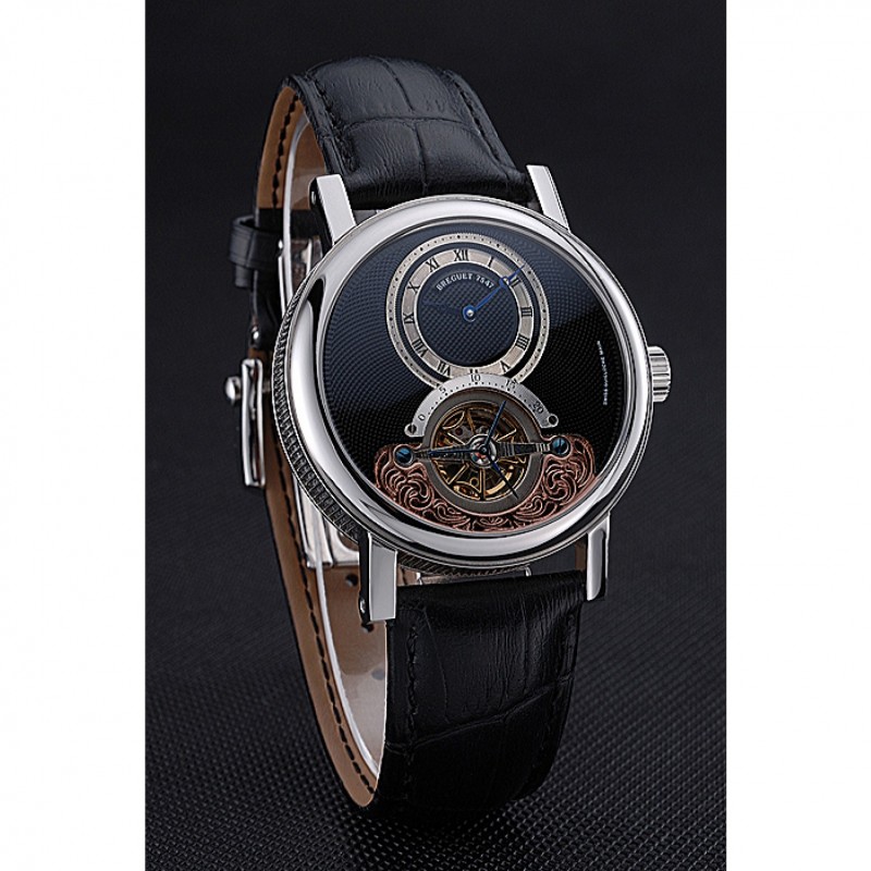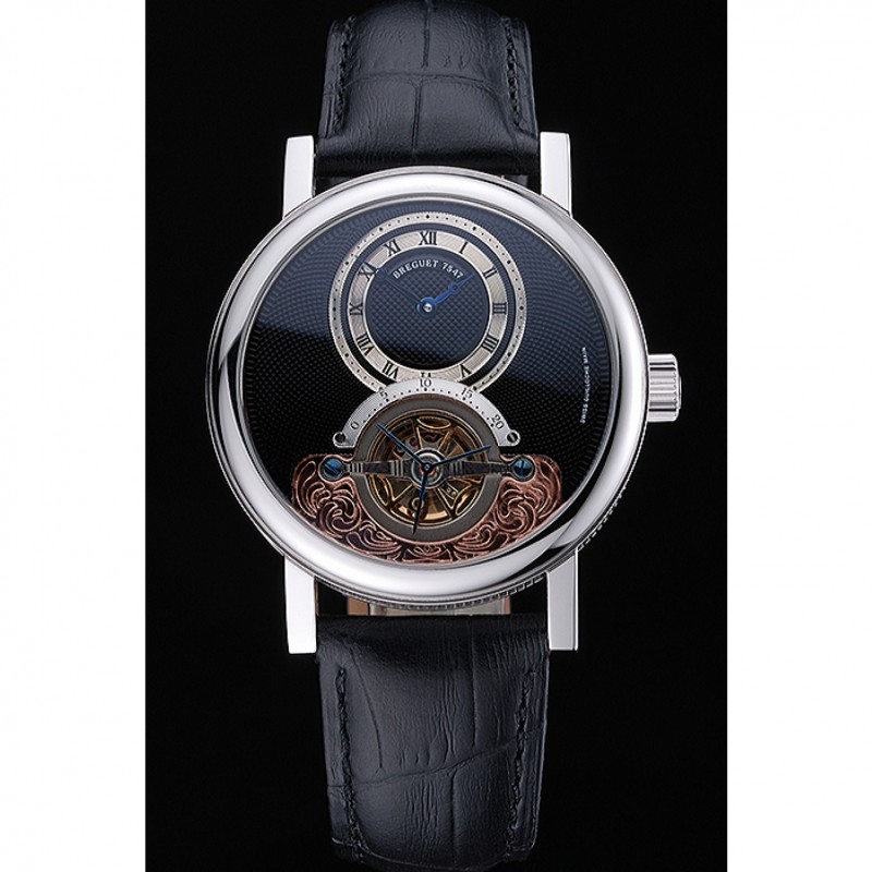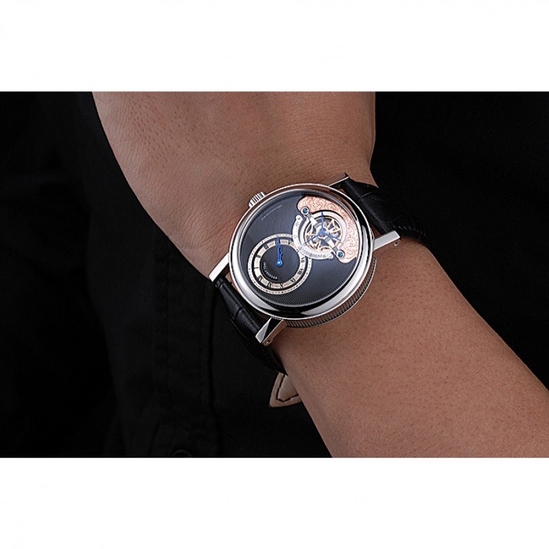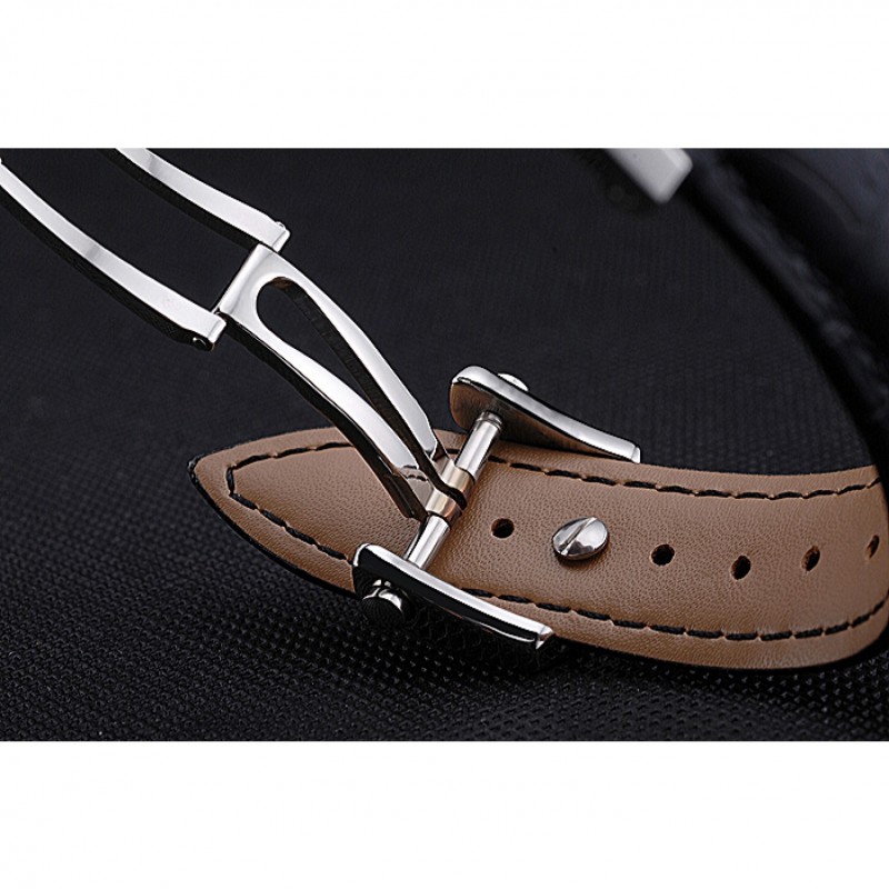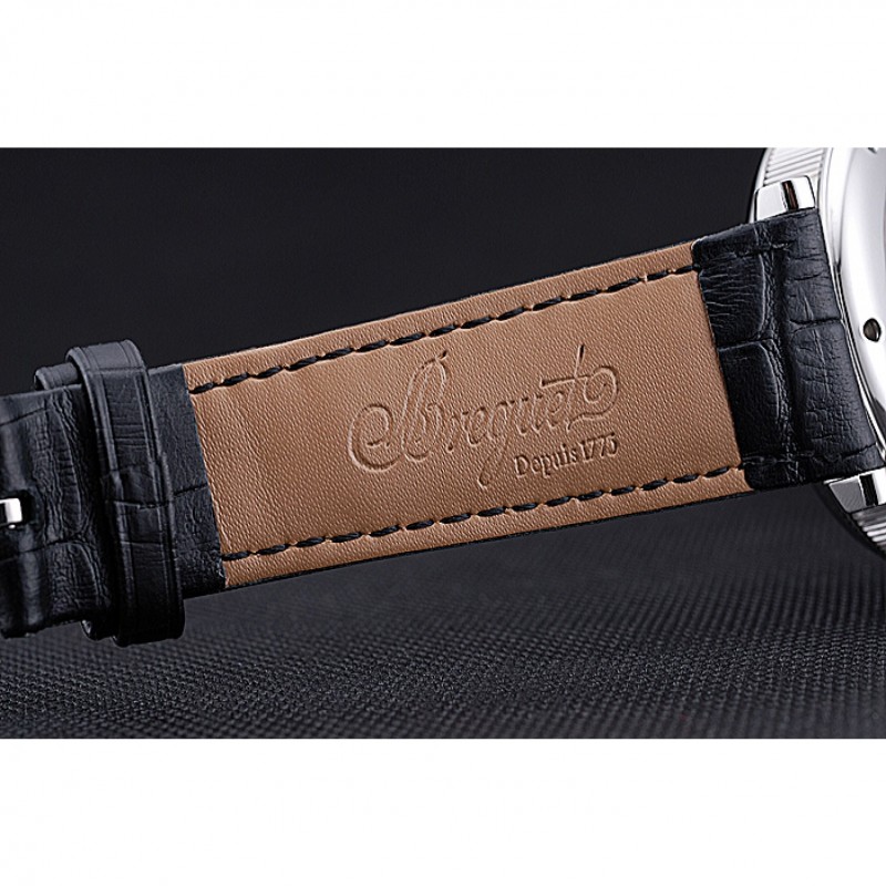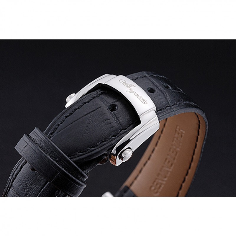 pulsera: correa de piel de cocodrilo negro en relieve de calor Breguet con Breguet grabado pulido gancho de acero inoxidable cierre
