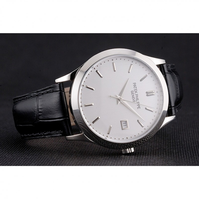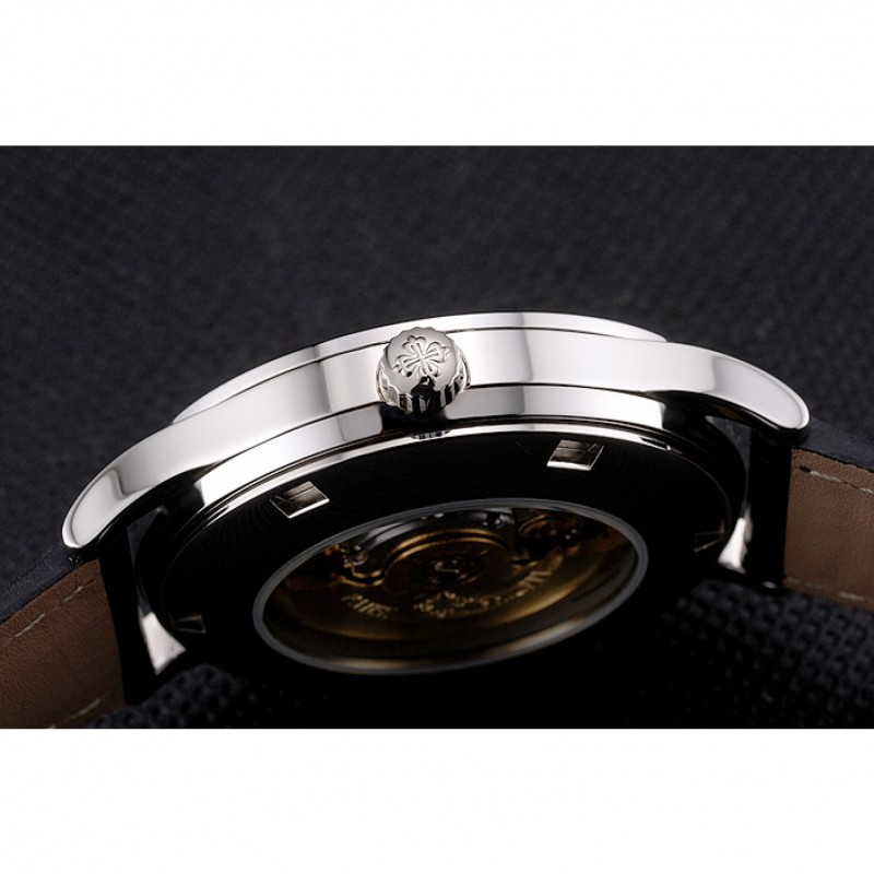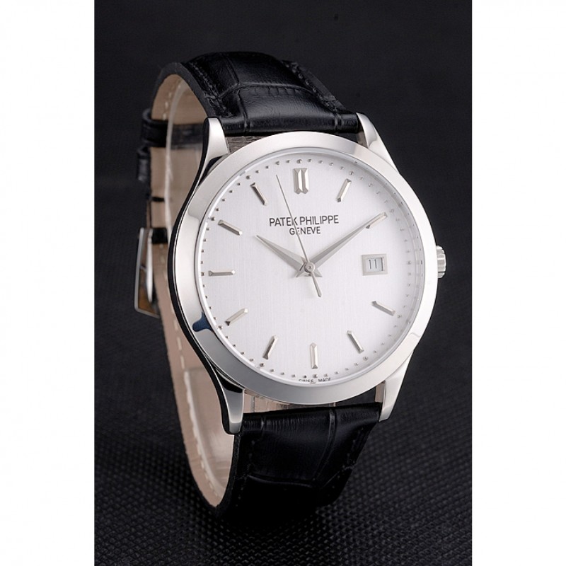 Inicio / Patek Philippe / Calatrava / Plata suizo Patek Philippe Calatrava Dial correa de cuero caja de acero inoxidable Negro