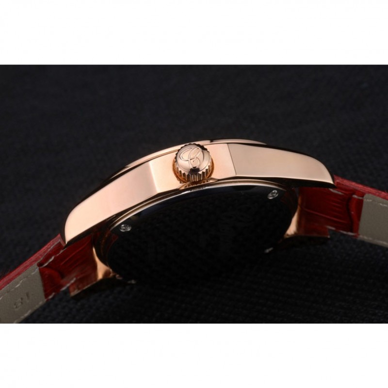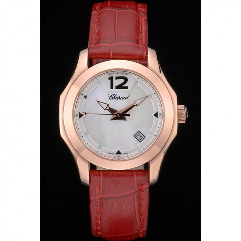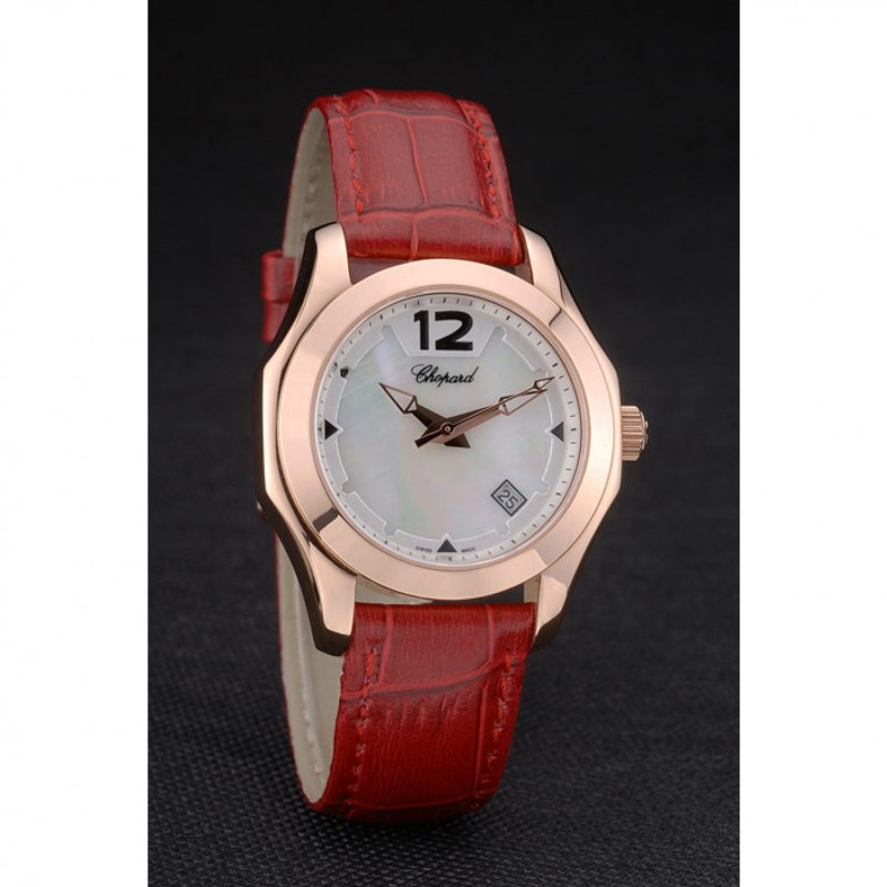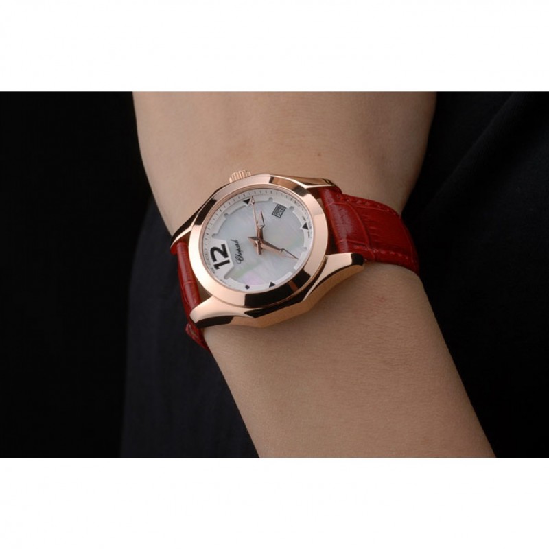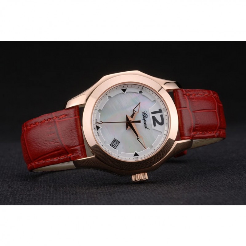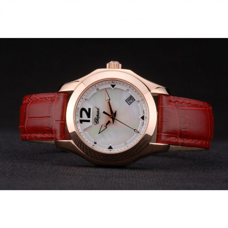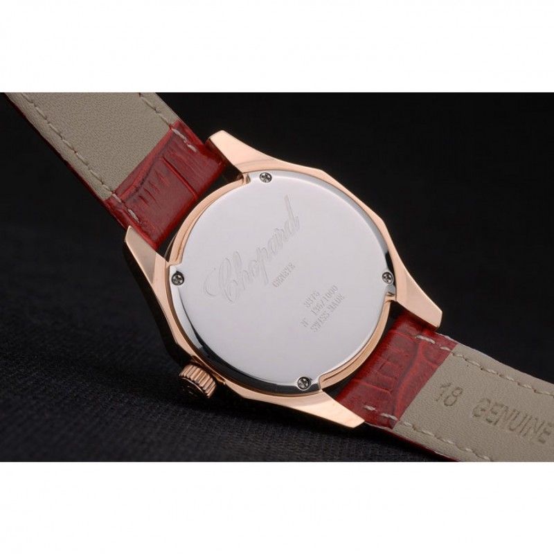 pulsera: correa de piel de cocodrilo de color rojo en relieve de calor Chopard con Chopard inscrito rosa de 18 quilates chapado en oro gancho hebilla de cierre