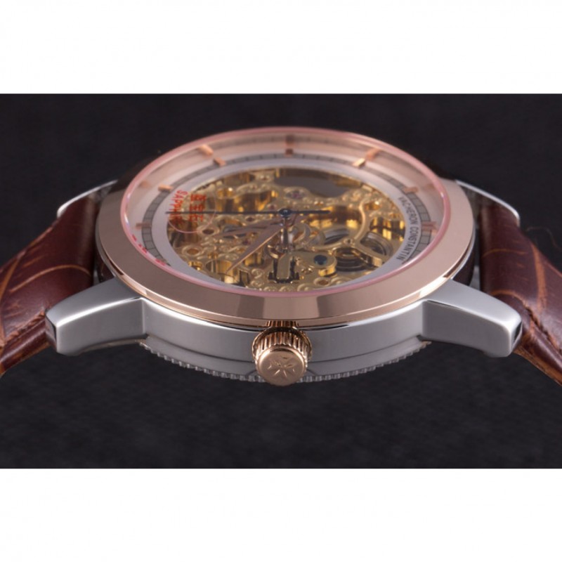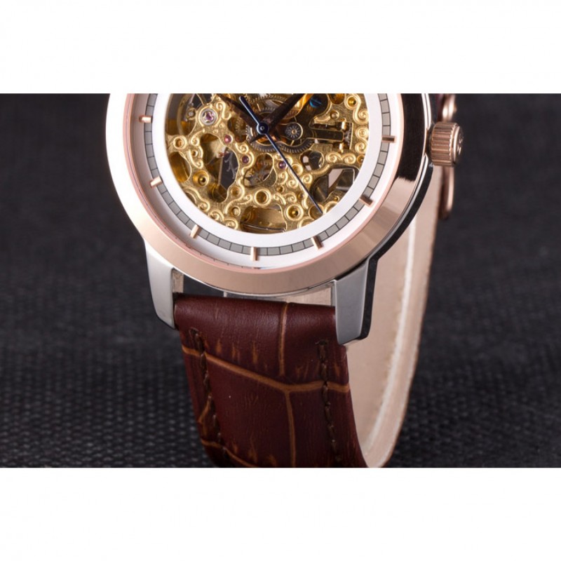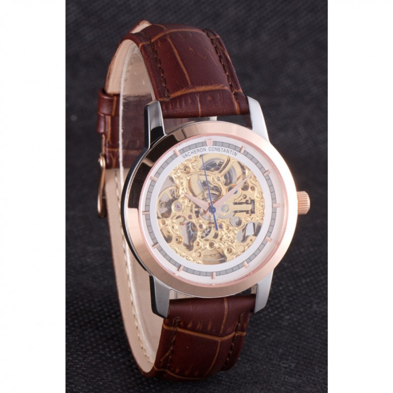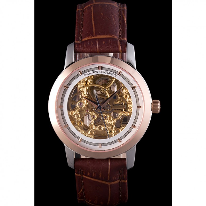 Inicio / Vacheron Constantin / Reloj blanco esqueleto Vacheron Constantin con bisel de oro rosa y Brown correa de cuero 621539