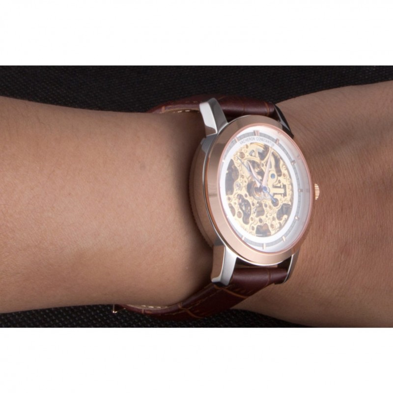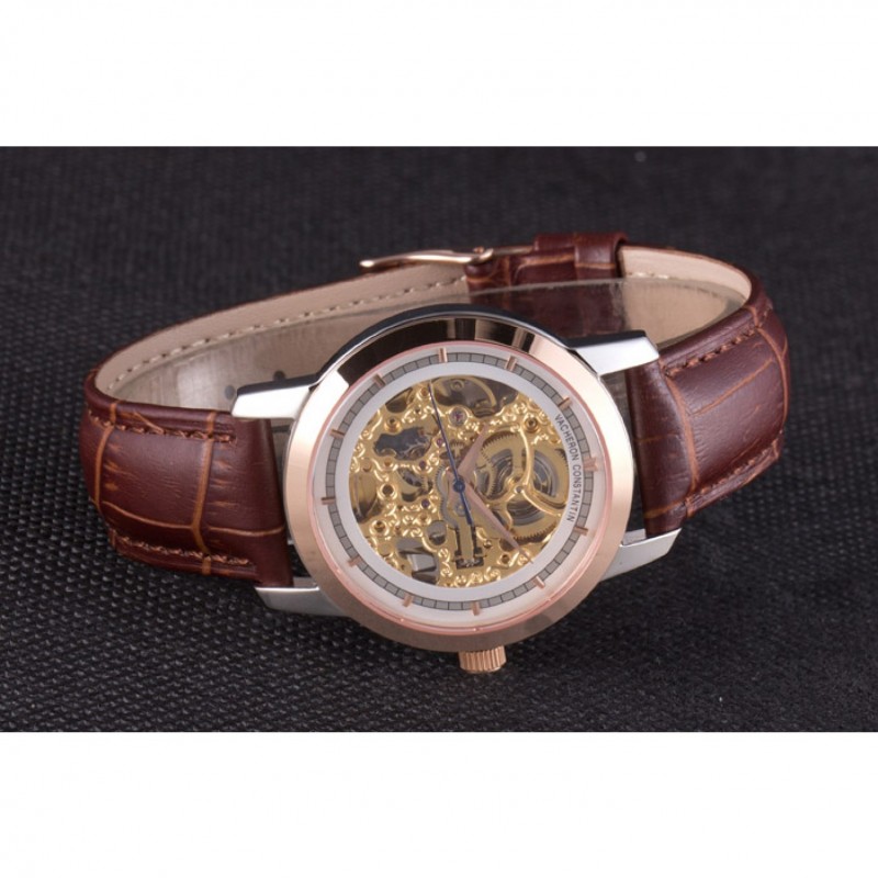 1 valoración en Reloj blanco esqueleto Vacheron Constantin con bisel de oro rosa y Brown correa de cuero 621539