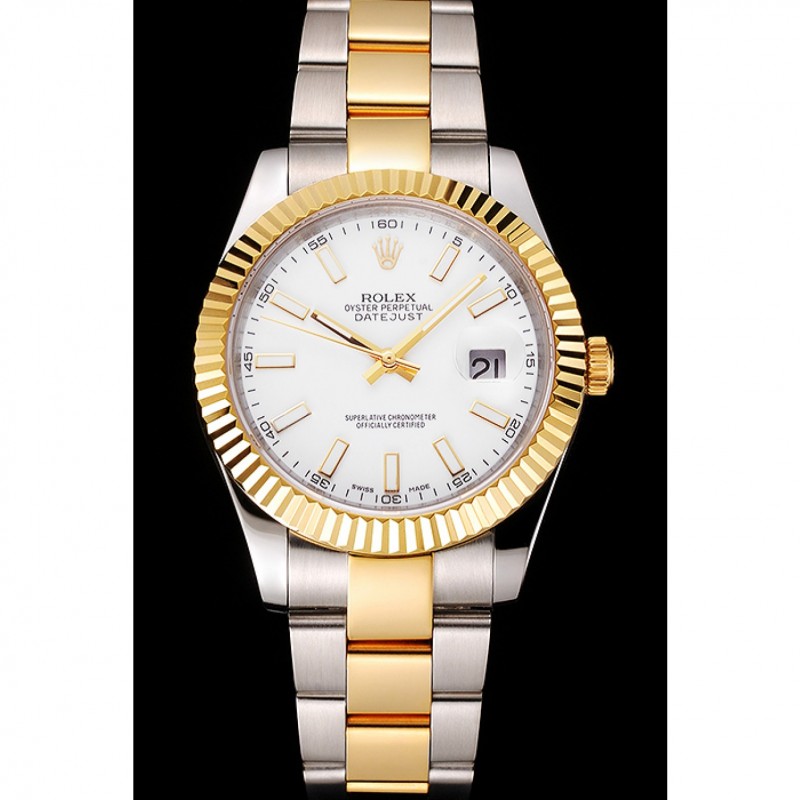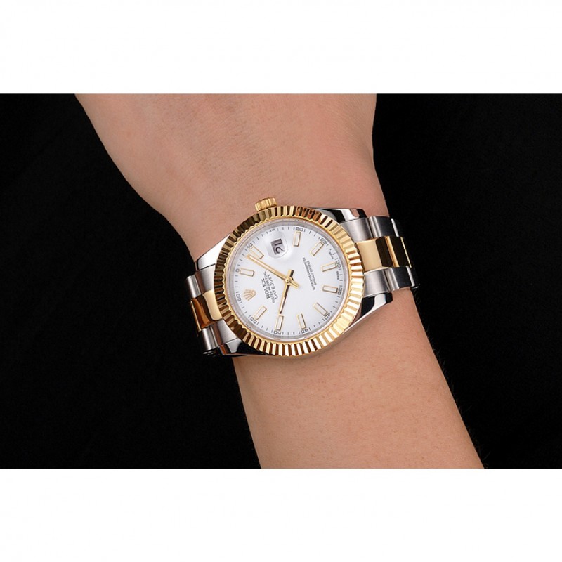 Inicio / Rolex / Datejust / Rolex Datejust Blanco Dial Caja de acero inoxidable Pulsera de Oro Dos Tonos