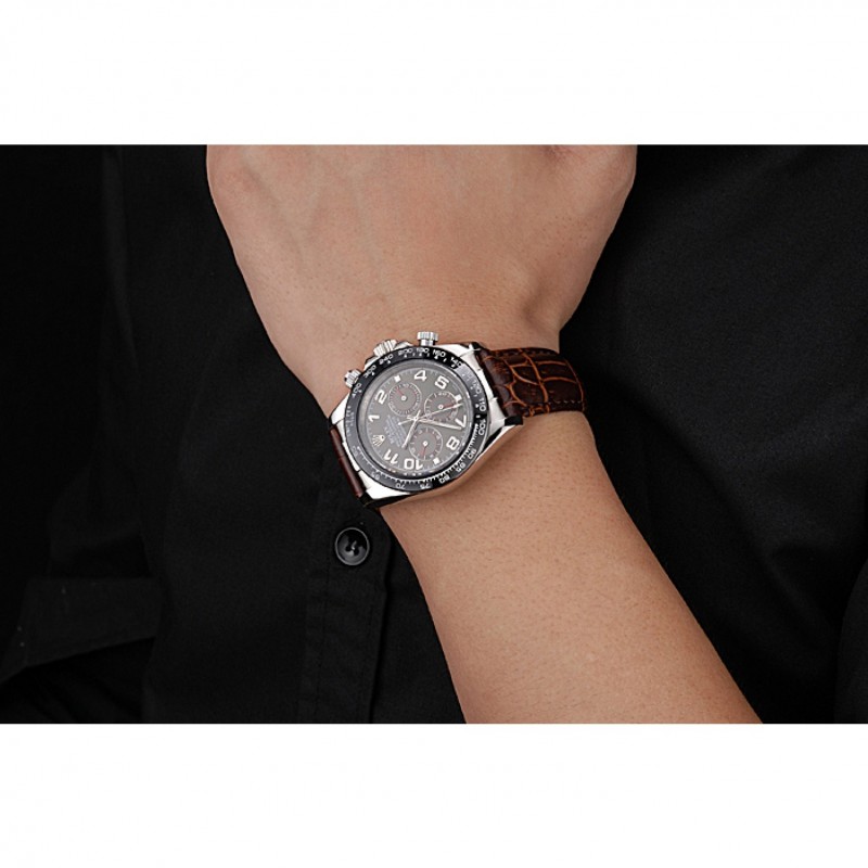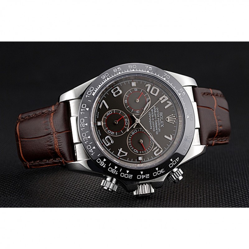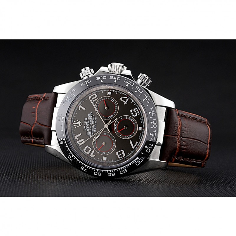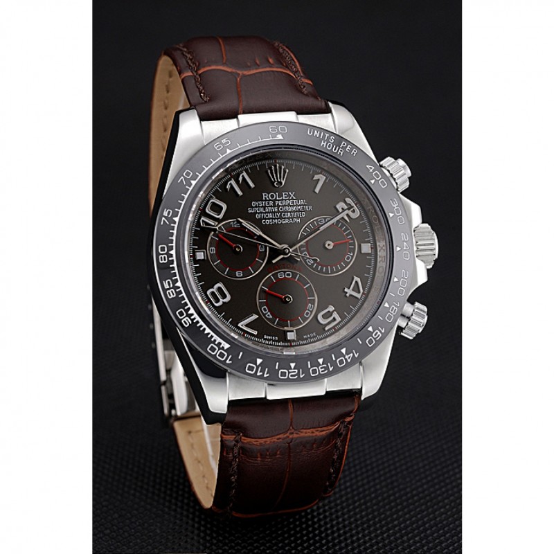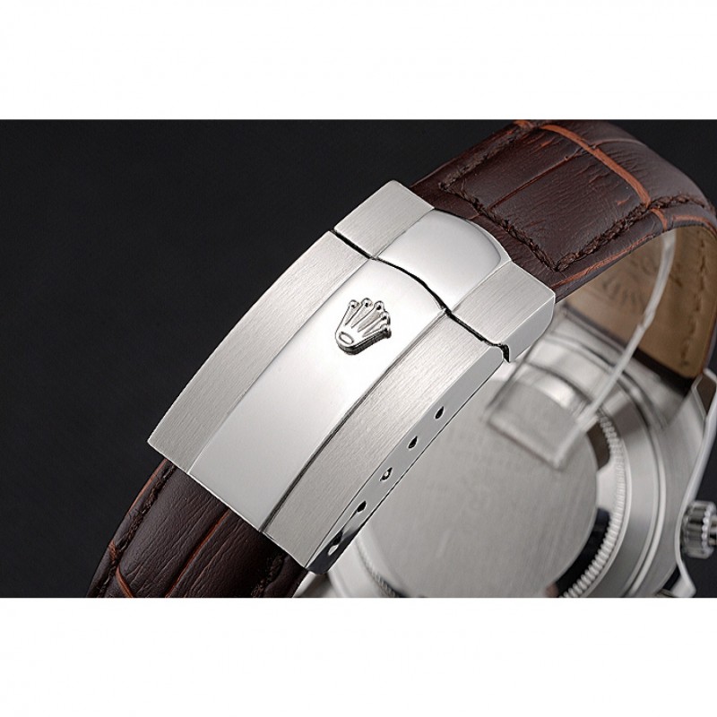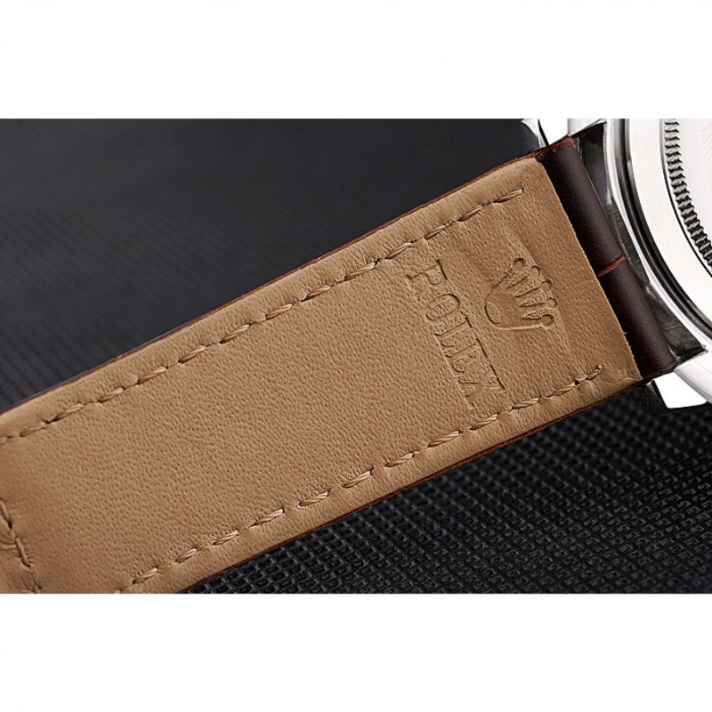 pulsera: logotipo y correa de cuero Rolex de calor en relieve de cocodrilo marrón con logo tallado acero inoxidable cepillado implementación de cierre