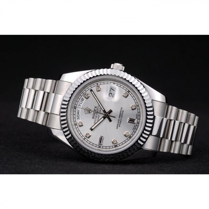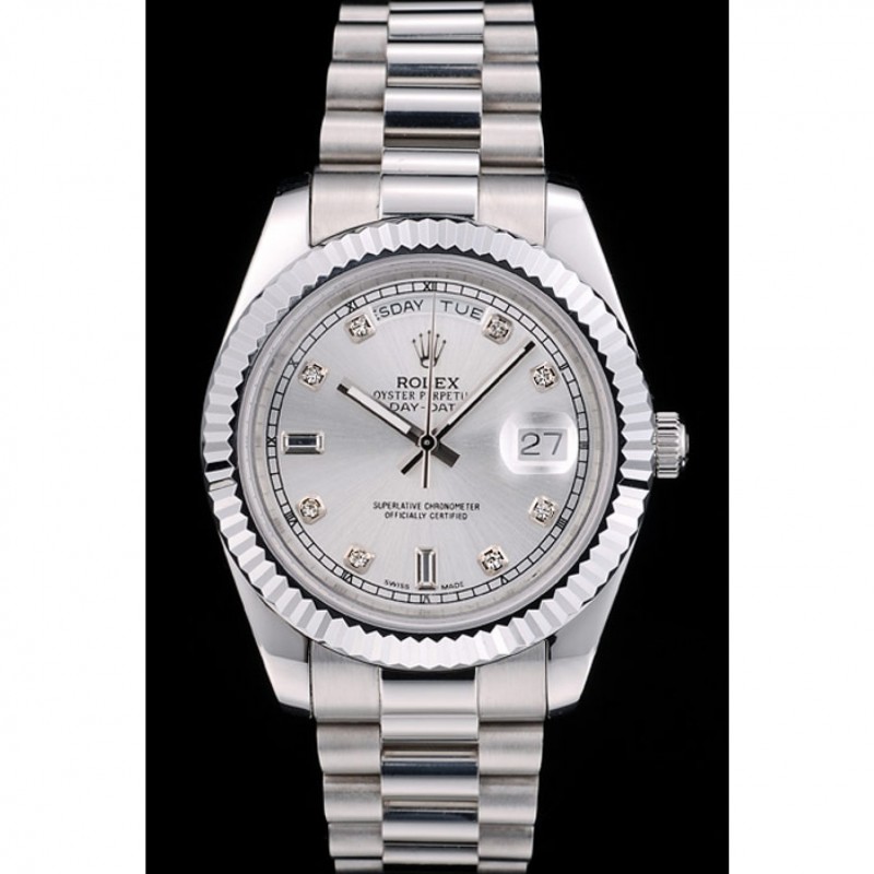 Inicio / Rolex / Daydate / Rolex DayDate suiza de acero inoxidable acanalado Bisel Dial de plata 41995