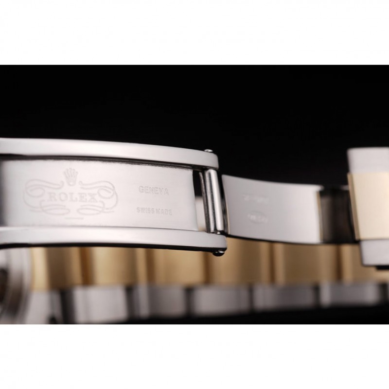 pulsera: 18k oro amarillo y acero inoxidable pulido brazalete de eslabones con Rolex hebilla de despliegue logotipo