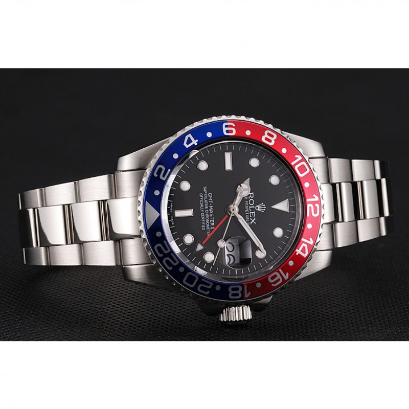 Inicio / Rolex / Gmt Master / Rolex GMT Master II Dial Negro Caja de acero inoxidable bisel Pepsi y pulsera 1453751