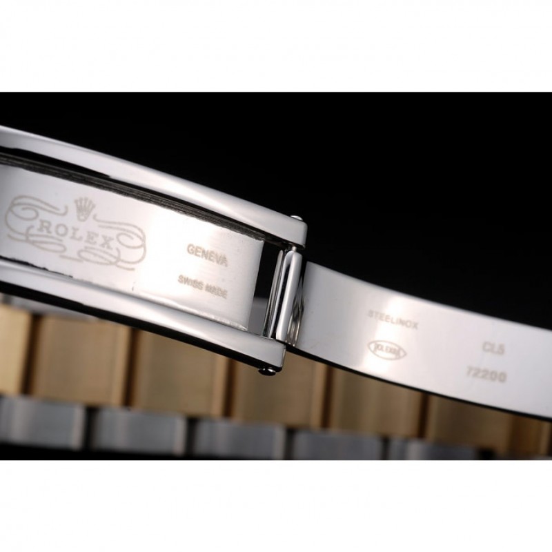 pulsera: oro amarillo plateado y cepillado pulsera de eslabones de acero inoxidable con cierre desplegable grabado con el logo de Rolex en la parte superior