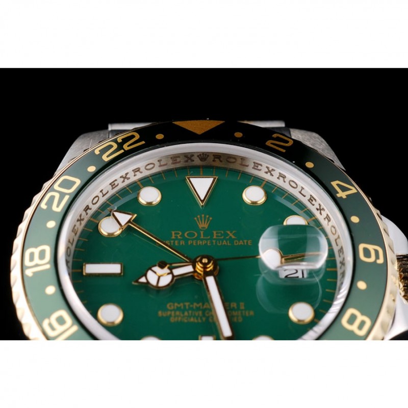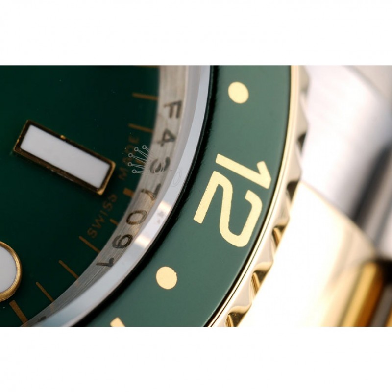 bisel: green bisel cutwork cerámica con índice de oro y marcadores de hora números arábigos