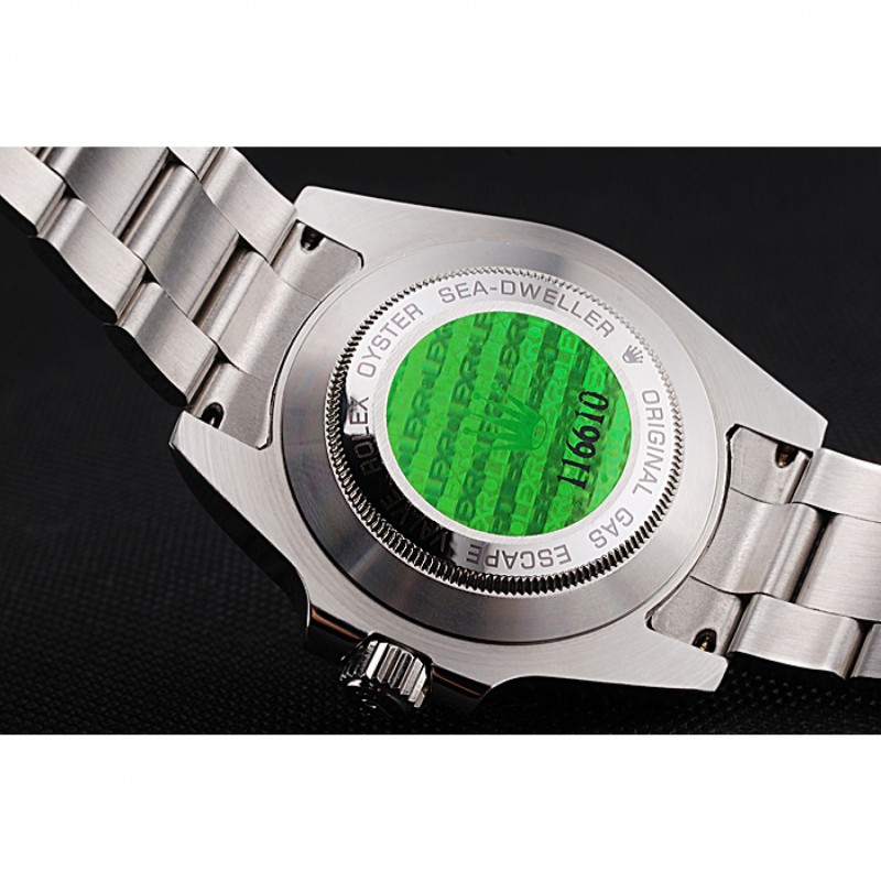 Volver: Snap-cepillado de acero inoxidable en la parte trasera con Rolex etiqueta de holograma verde