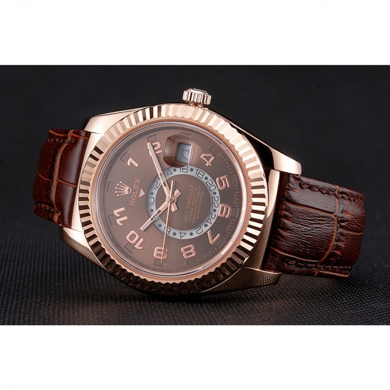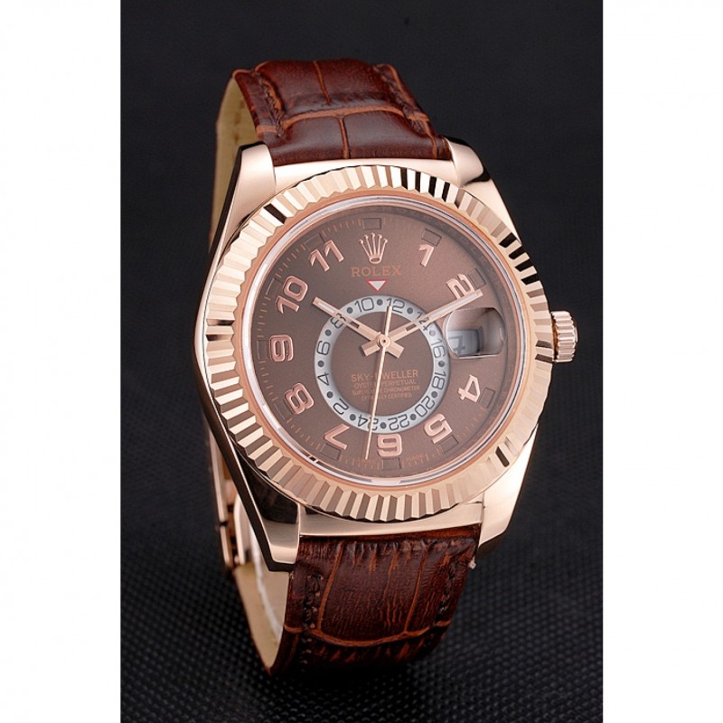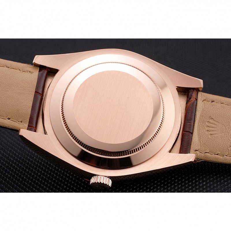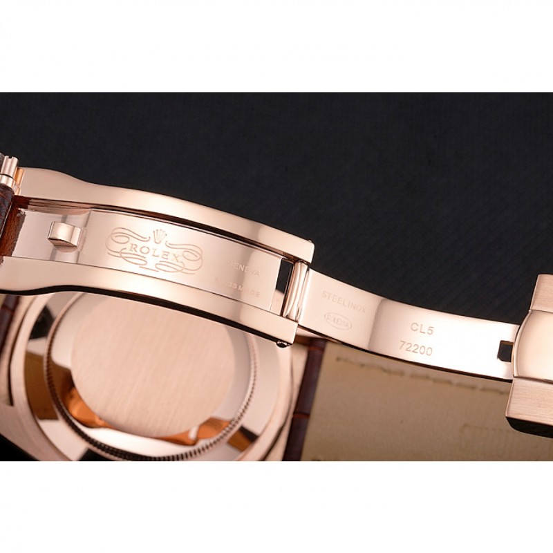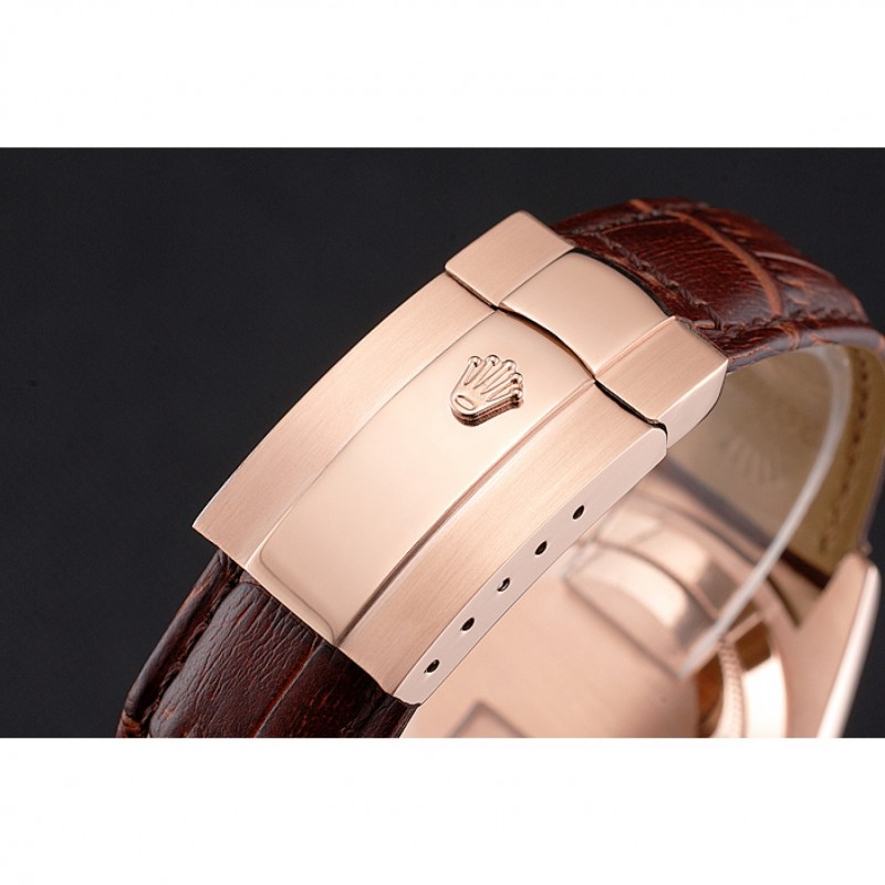 pulsera: relieve Rolex y el logotipo de calor correa de piel de cocodrilo marrón con logotipo de Rolex 18k tallado de oro rosa plateado cierre plegable