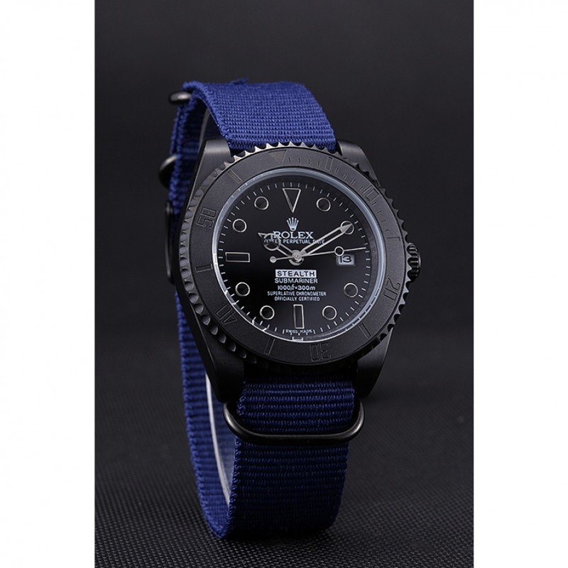 pulsera/:correa/nylon azul con cutwork logotipo de Rolex gancho hebilla de ión-plateado broche