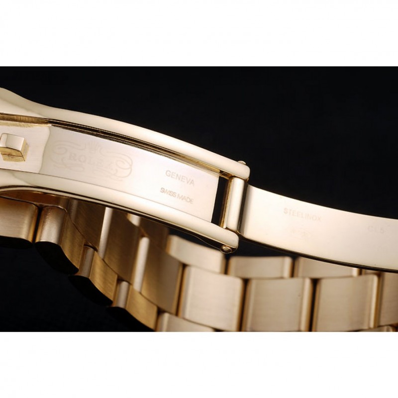 pulsera: brazalete de eslabones de oro con el grabado Rolex en el interior de la hebilla de despliegue y un logotipo de Rolex en la parte superior