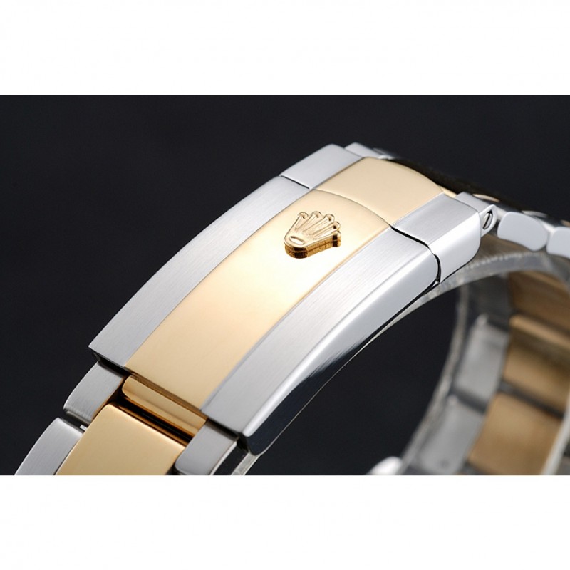 pulsera: acero inoxidable cepillado y amarillo brazalete de eslabones de oro con el grabado Rolex en el interior de la hebilla de despliegue y un logotipo de Rolex en la parte superior