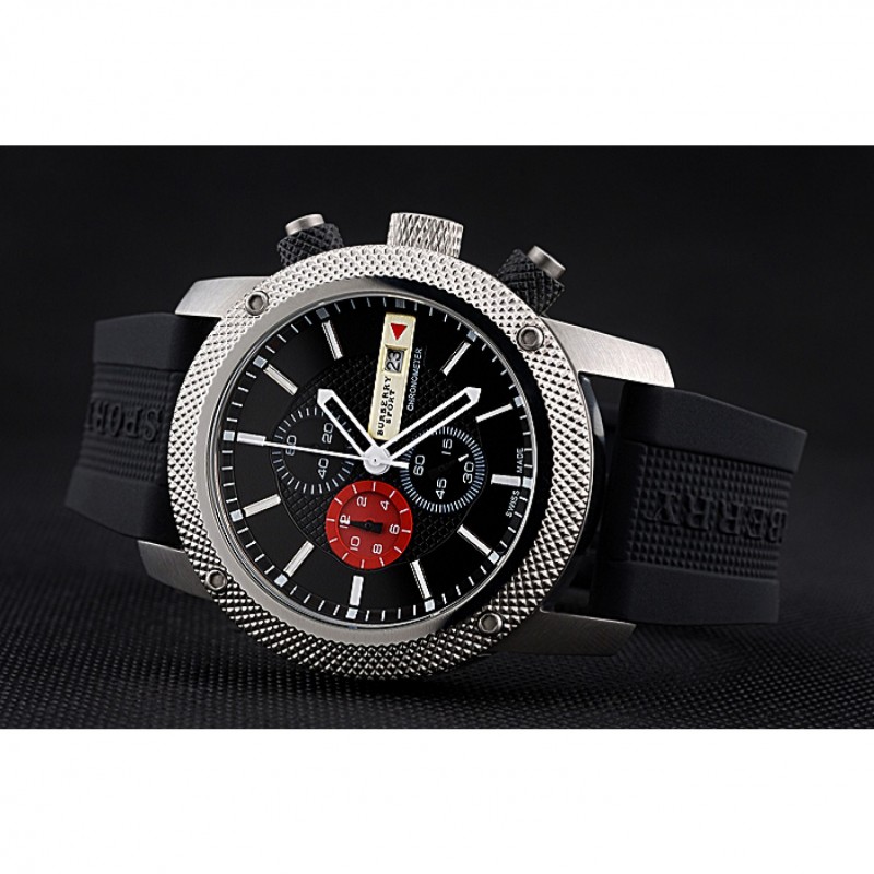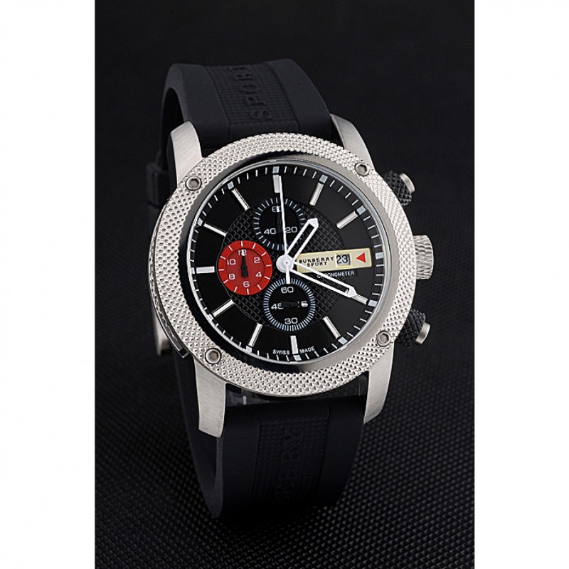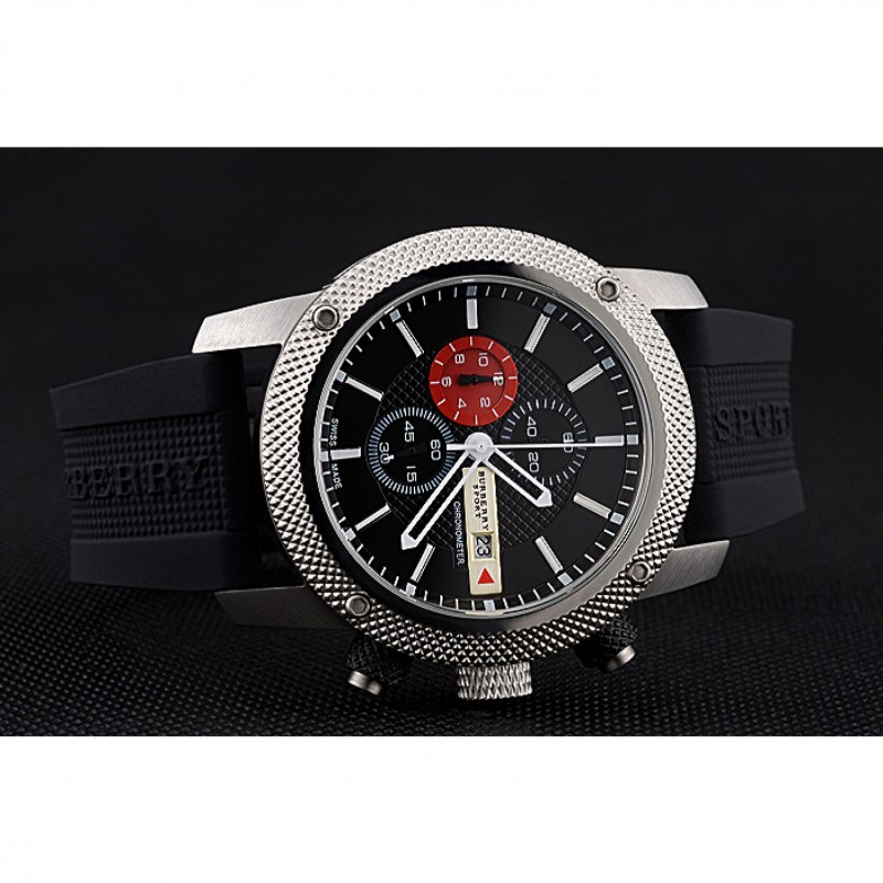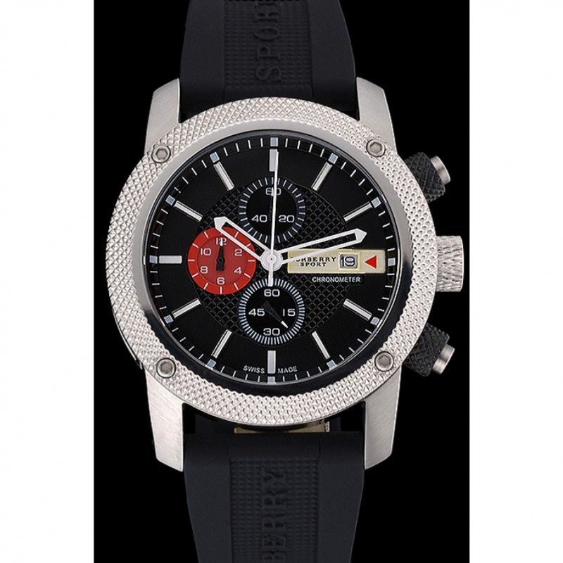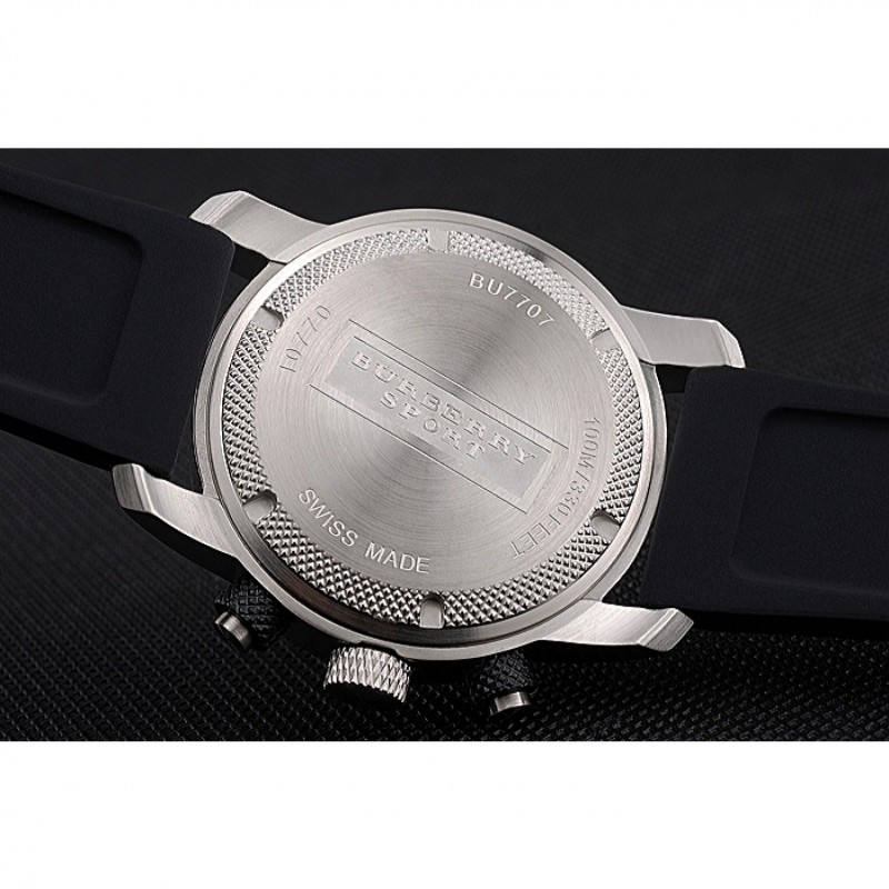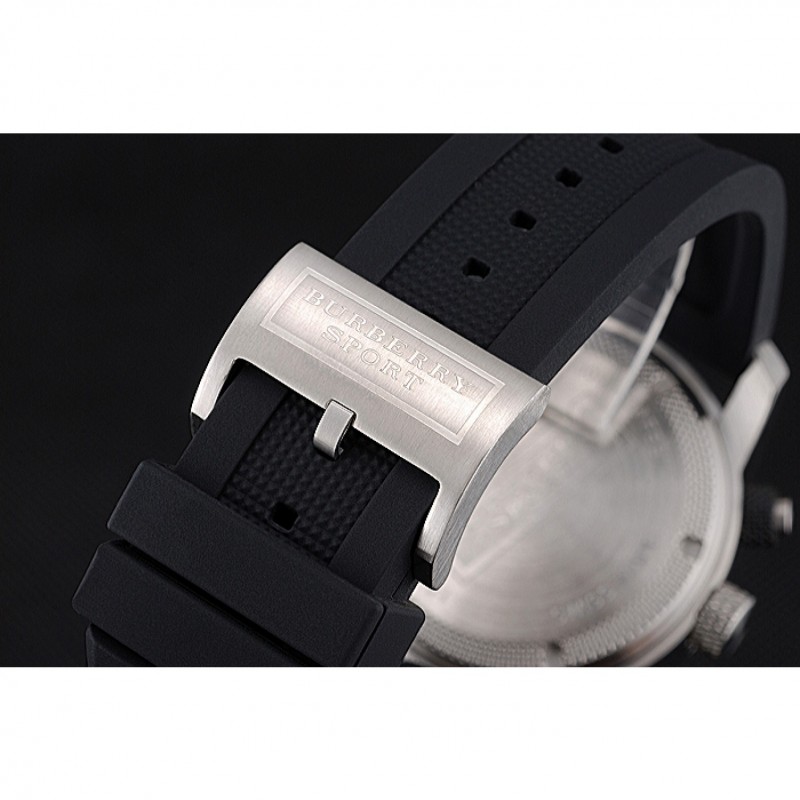 pulsera: correa de caucho Negro con Burberry Sport grabado acero inoxidable cepillado de gancho hebilla de cierre