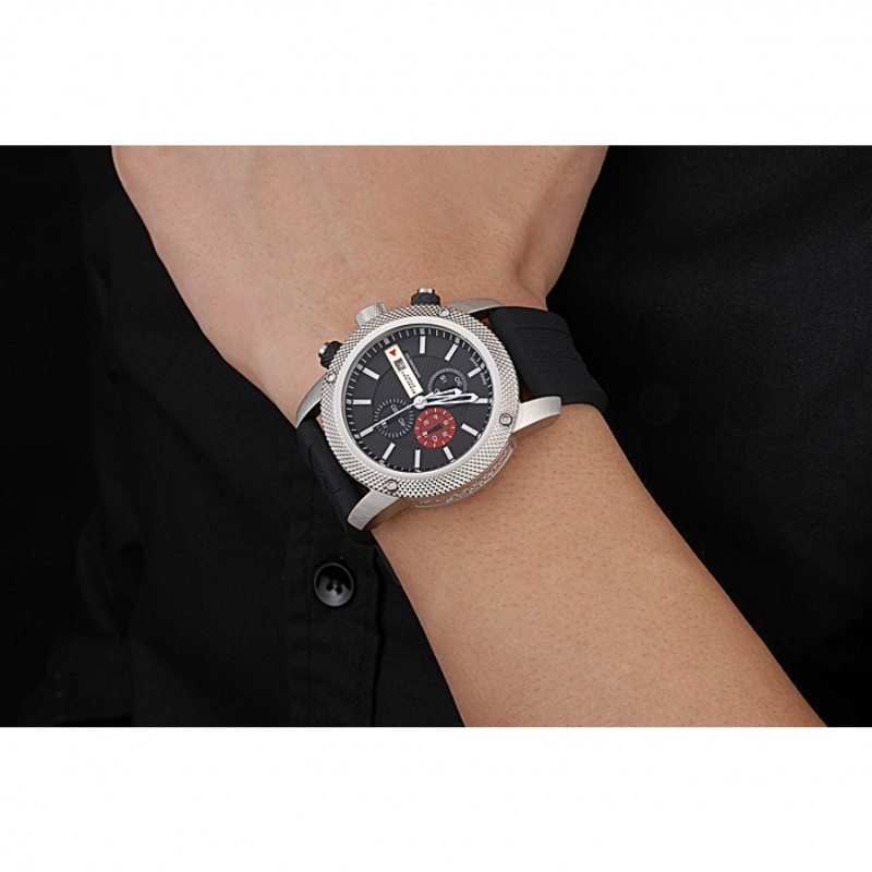 Crown: cepillado cutwork corona de acero inoxidable con cutwork caucho negro recortado cepillado pulsador de acero inoxidable botón de la corona en cada lado