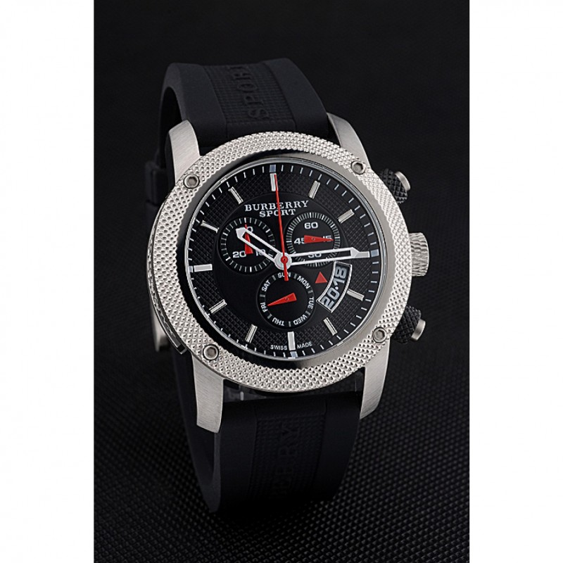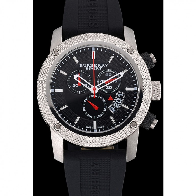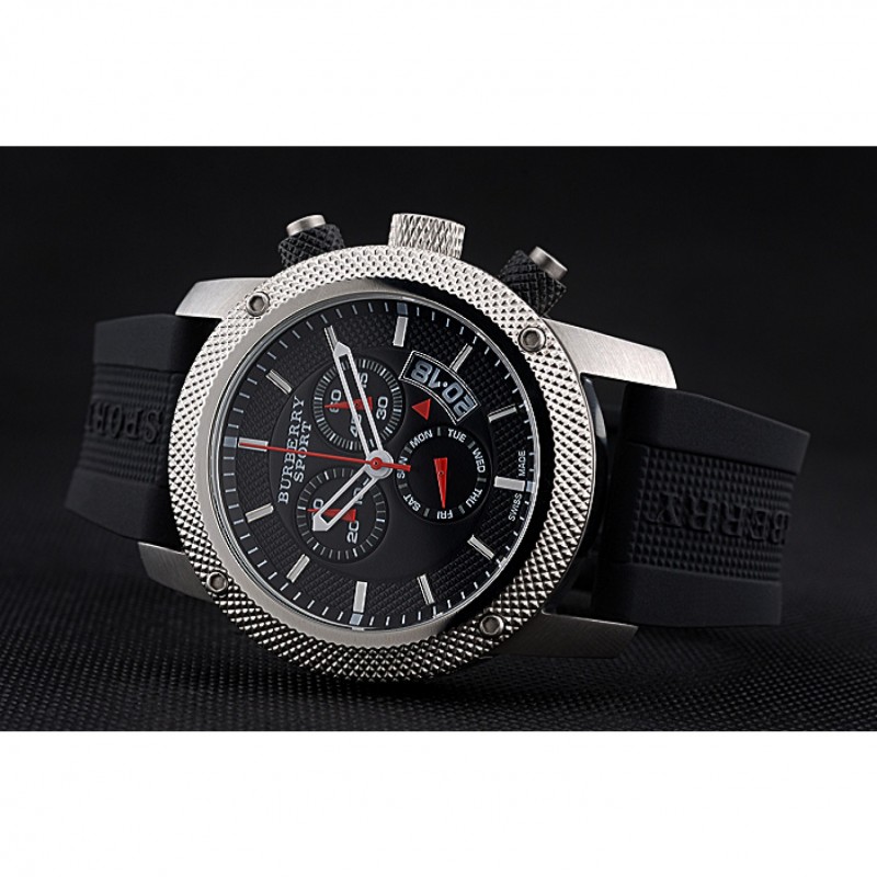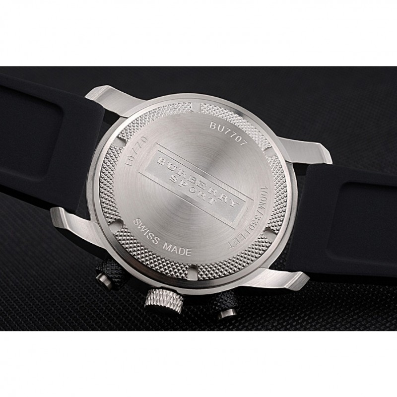 Inicio / Burberry / Ronda de Burberry del atleta del deporte del cronógrafo de la caja blanca del ojo Triple-622620 pulsera de goma Negro