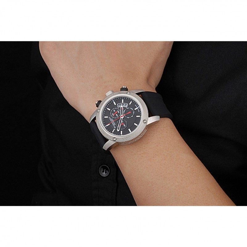 Crown: cepillado cutwork corona de acero inoxidable con cutwork caucho negro recortado cepillado pulsador de acero inoxidable botón de la corona en cada lado