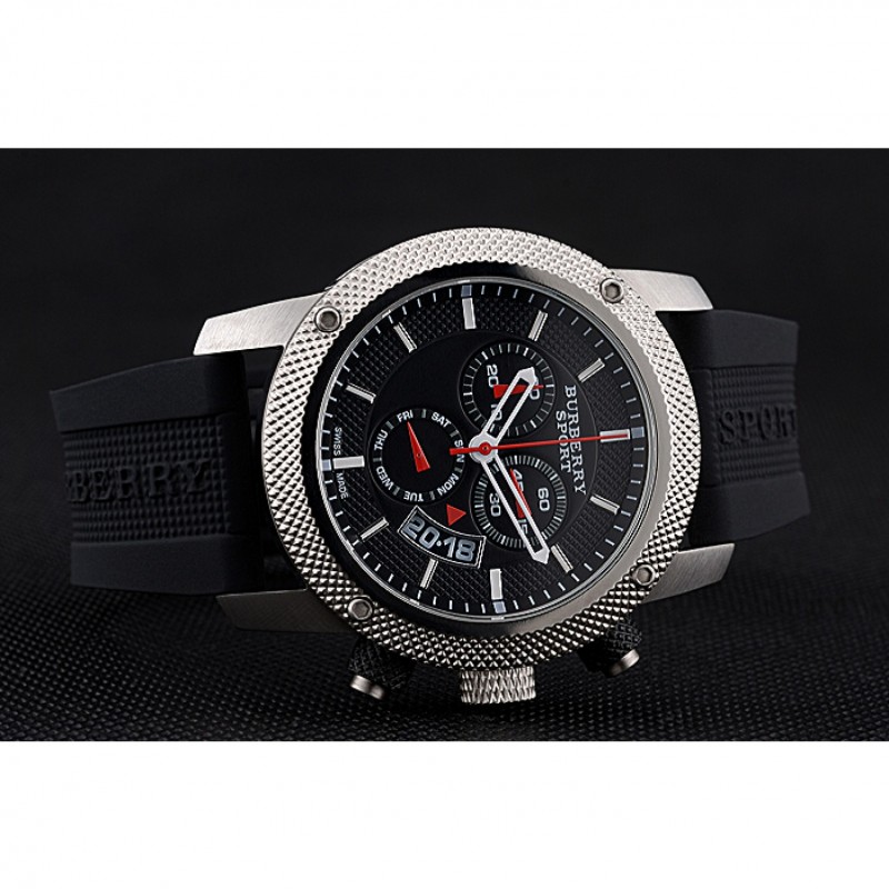 pulsera: correa de caucho Negro con Burberry Sport grabado acero inoxidable cepillado de gancho hebilla de cierre