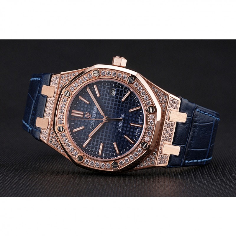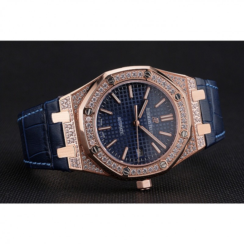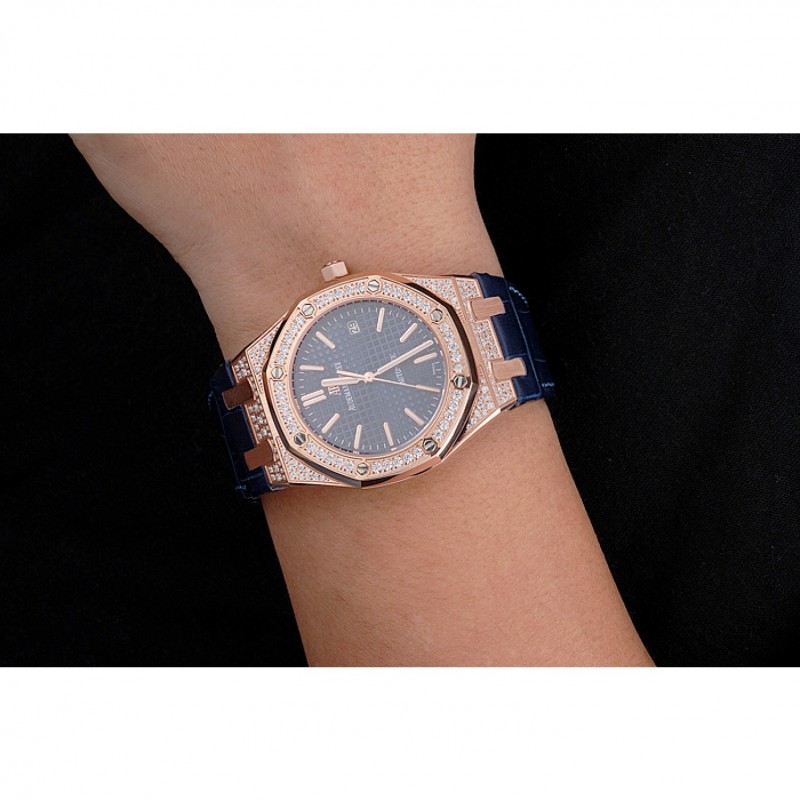 Corona: 18k logotipo de Audemars Piguet grabado oro rosa plateado calado bisel