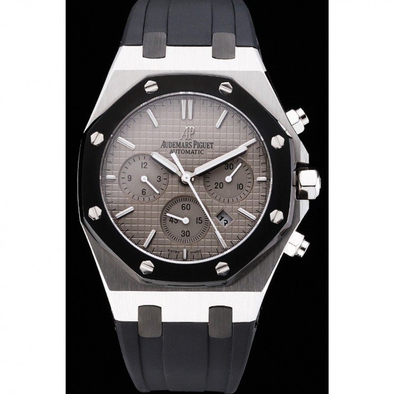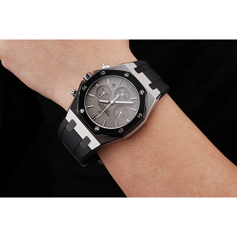 pulsera : correa de caucho negro en relieve calor Royal Oak offshore con Audemars Piguet grabado de acero inoxidable pulido plegable en cierre de gancho