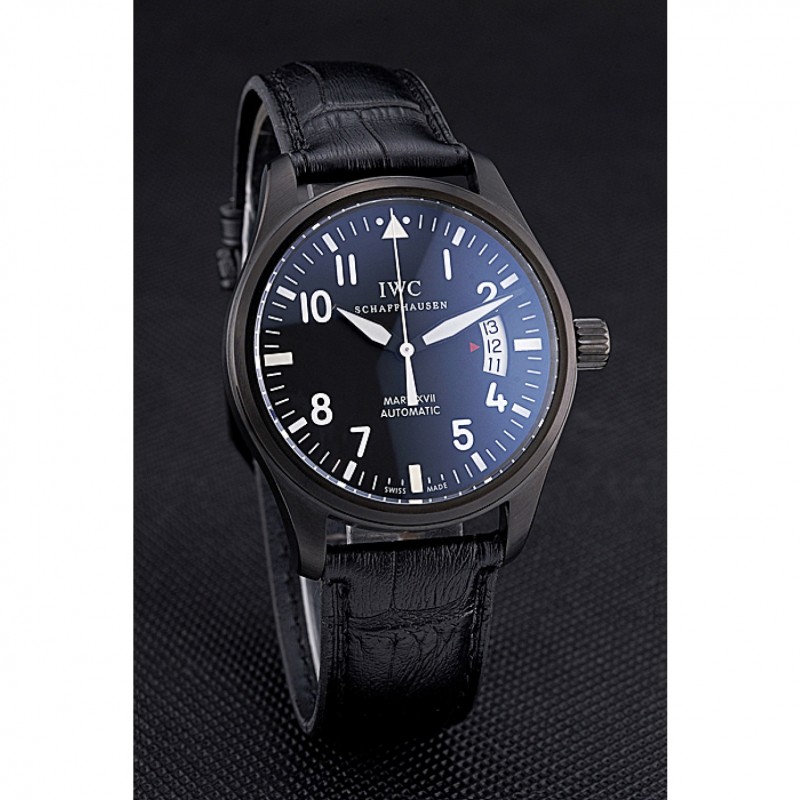 Inicio / IWC / Suiza CBI Marcos XVII Negro caja de acero Dial Negro Cuero Negro pulsera 622667