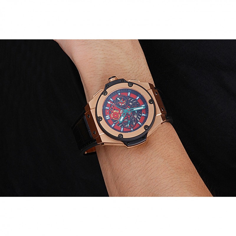 Suiza Hublot Big Bang Edición limitada Negro Y Rojo Dial Caja Oro Negro 62289 correa de cuero
