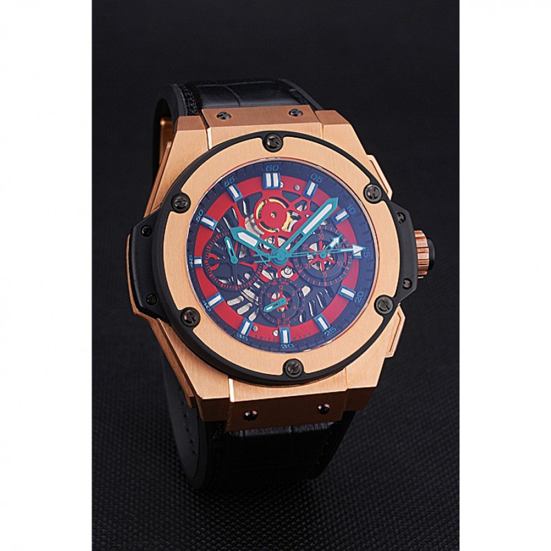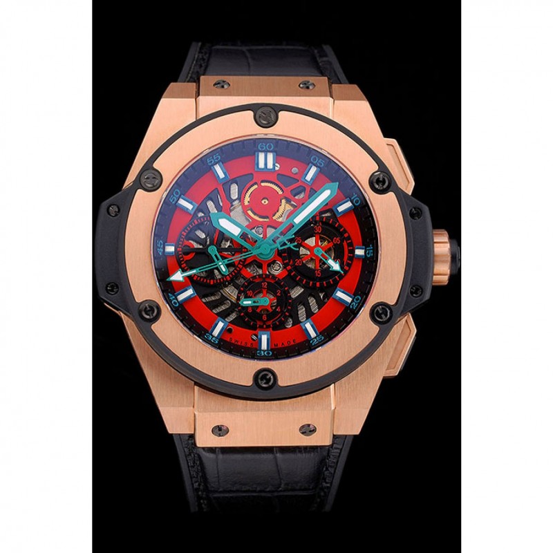 Inicio / Hublot / Big Bang / Suiza Hublot Big Bang Edición limitada Negro Y Rojo Dial Caja Oro Negro 62289 correa de cuero