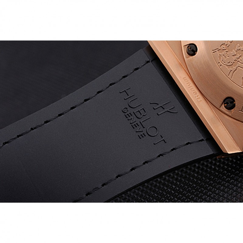 pulsera: Hublot Geneve y correa de piel de calor logotipo en relieve de cocodrilo negro con Hublot Geneve grabados rosa de 18 quilates chapado en oro de empuje libera el cierre