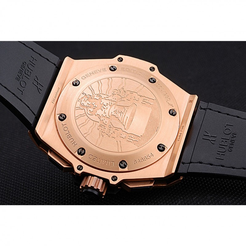 Volver: 18k Rose- chapado en oro atornillada de nuevo con la mecánica reavealing centro y la inscripción Hublot