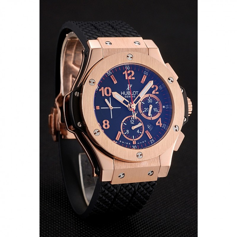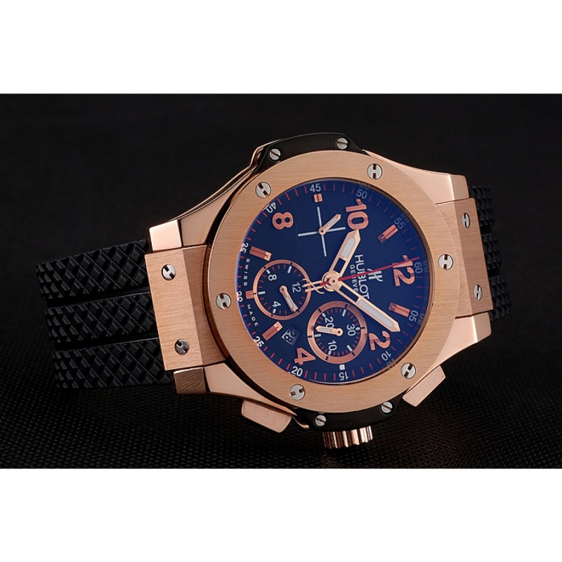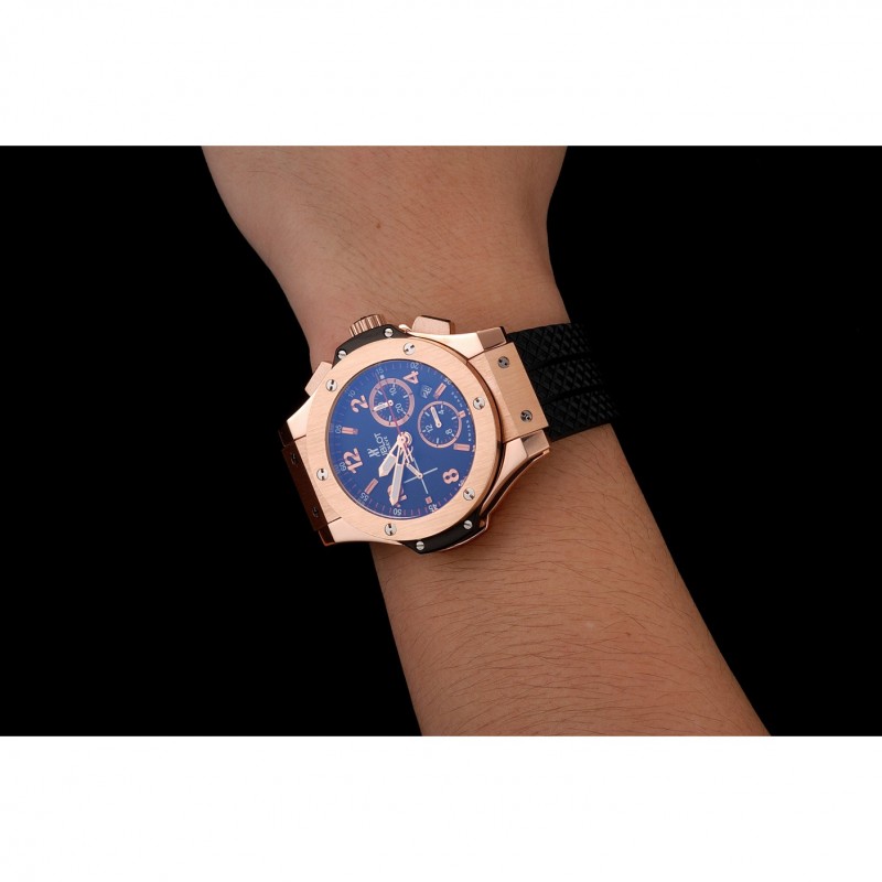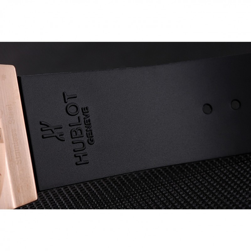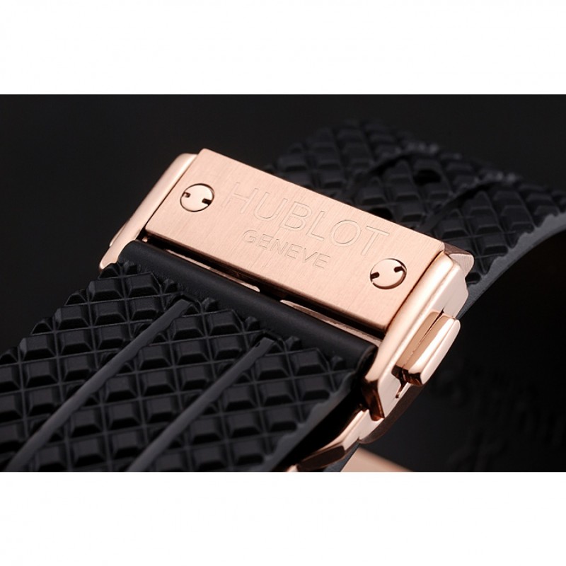 pulsera: Logo y correa de caucho Hublot Geneve calor en relieve texturizado negro con Hublot Geneve grabado rosa de 18 quilates chapado en oro empujar de liberación de gancho hebilla de cierre