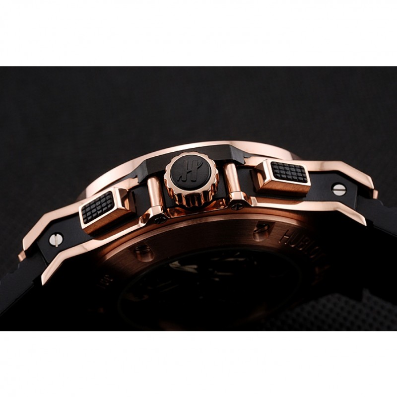 Crown: Hublot logo grabado 18k ajuste de goma negro se elevó-chapado en oro corona cutwork con una corona de botón en cada lado de ella