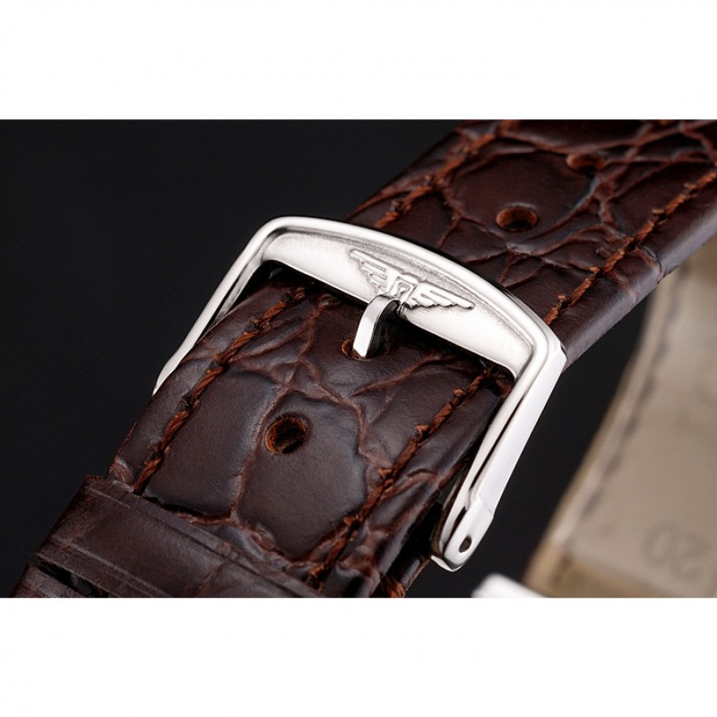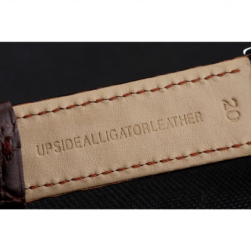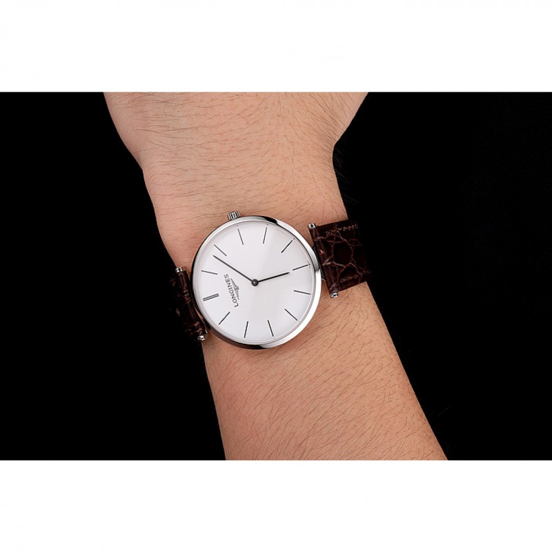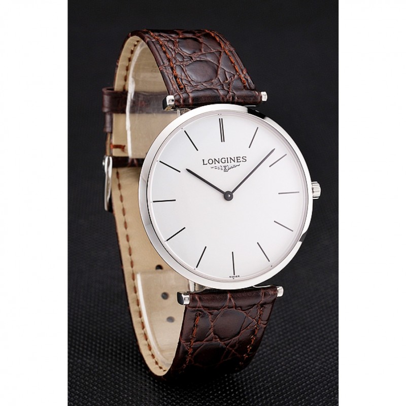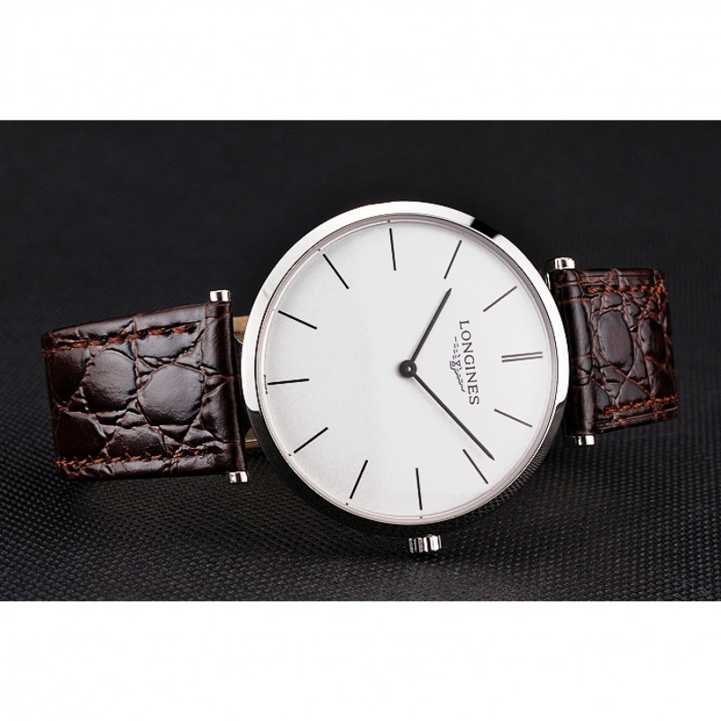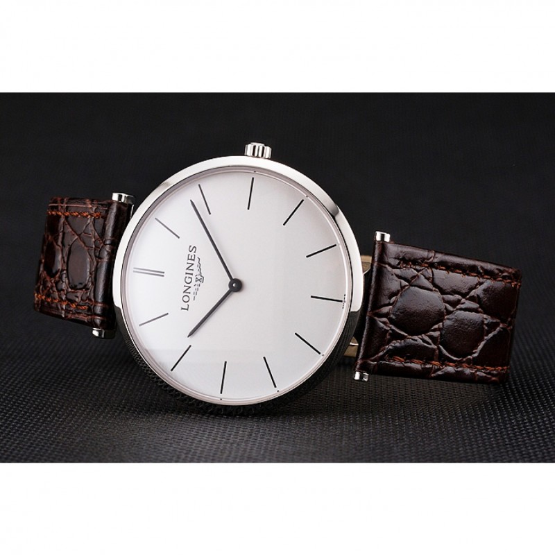 pulsera: correa de piel de cocodrilo marrón con el logotipo de Longines tallada acero inoxidable cepillado gancho hebilla de cierre