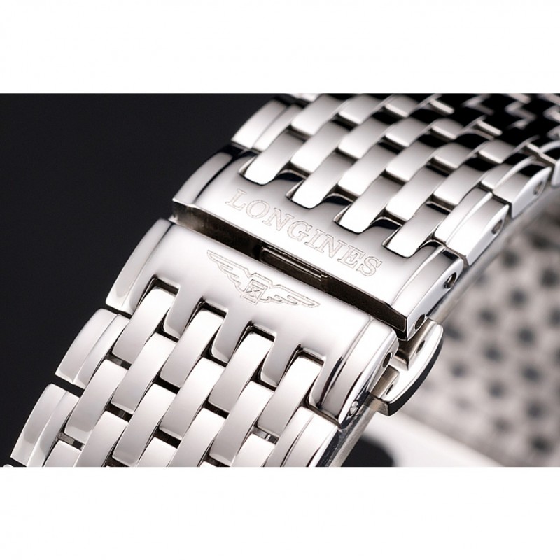 pulsera: pulido brazalete de eslabones de acero inoxidable con Longines y cierre oculto logotipo grabado de liberación empuje
