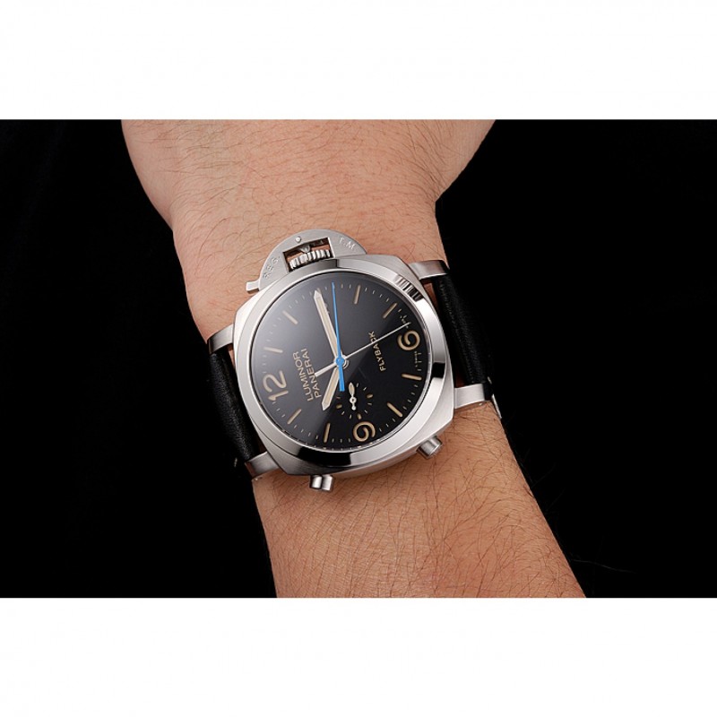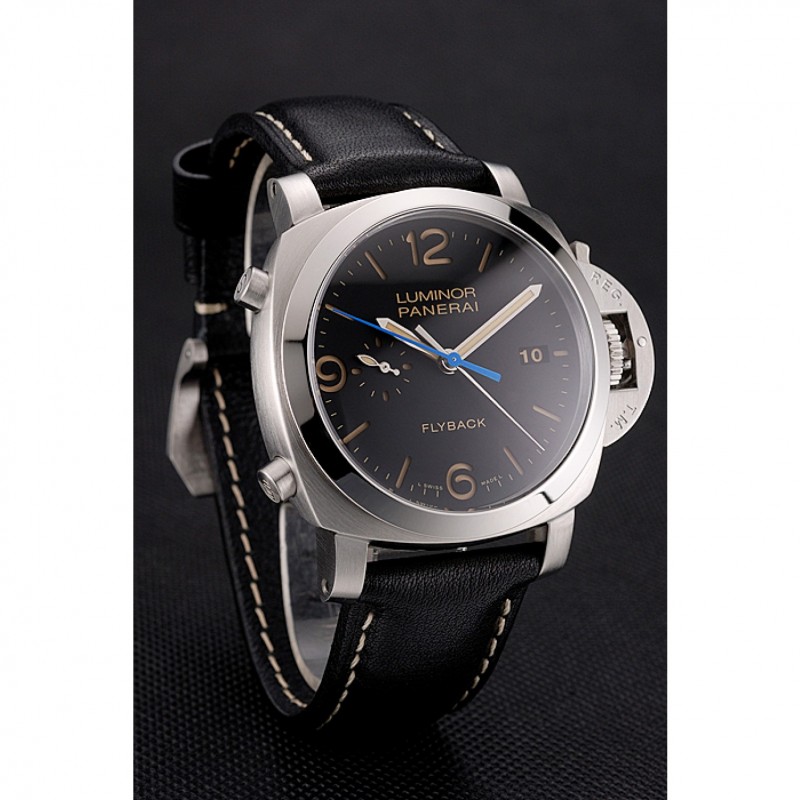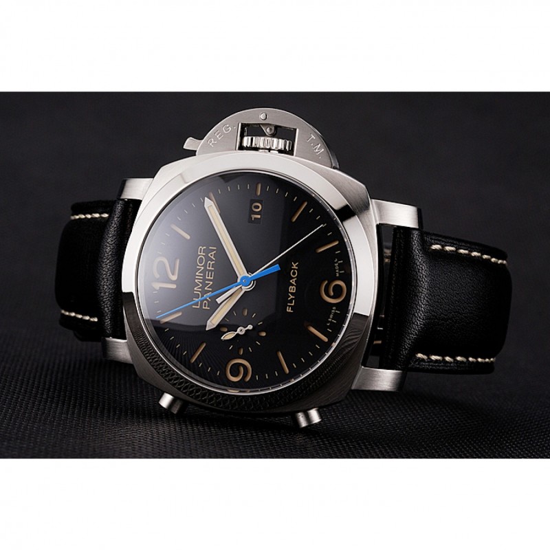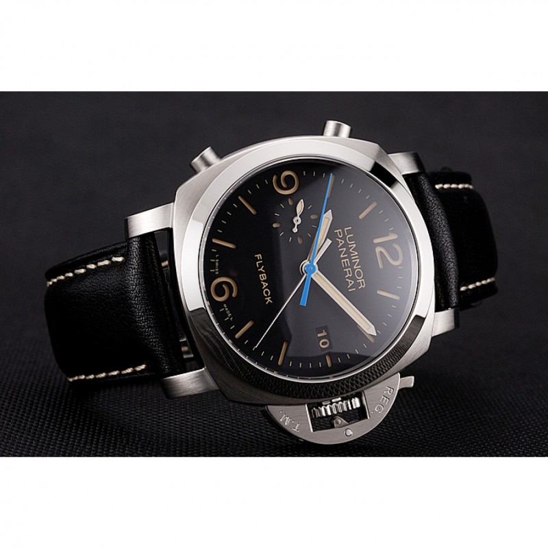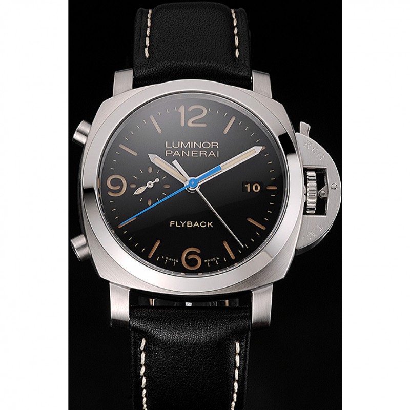 Inicio / Panerai / Luminor / Suiza Panerai Luminor Flyback Cronógrafo Negro Dial correa de cuero caja de acero inoxidable Negro