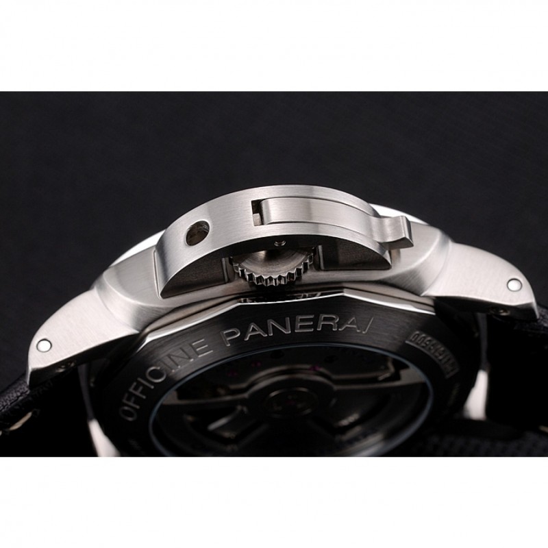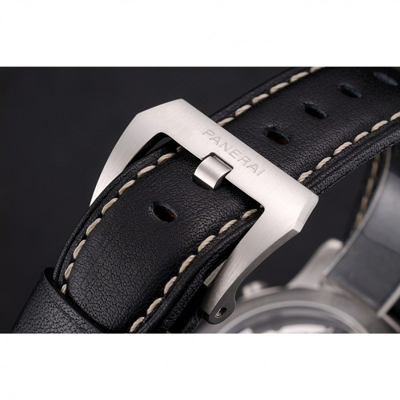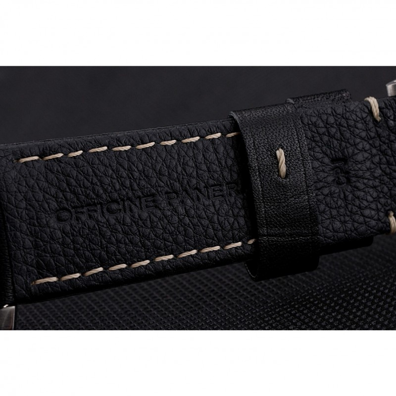 pulsera/: calor Officine Panerai correa de cuero negro en relieve con Panerai grabado de acero inoxidable cepillado gancho hebilla de cierre
