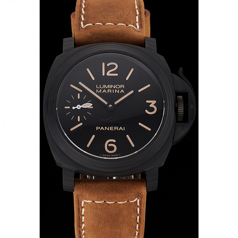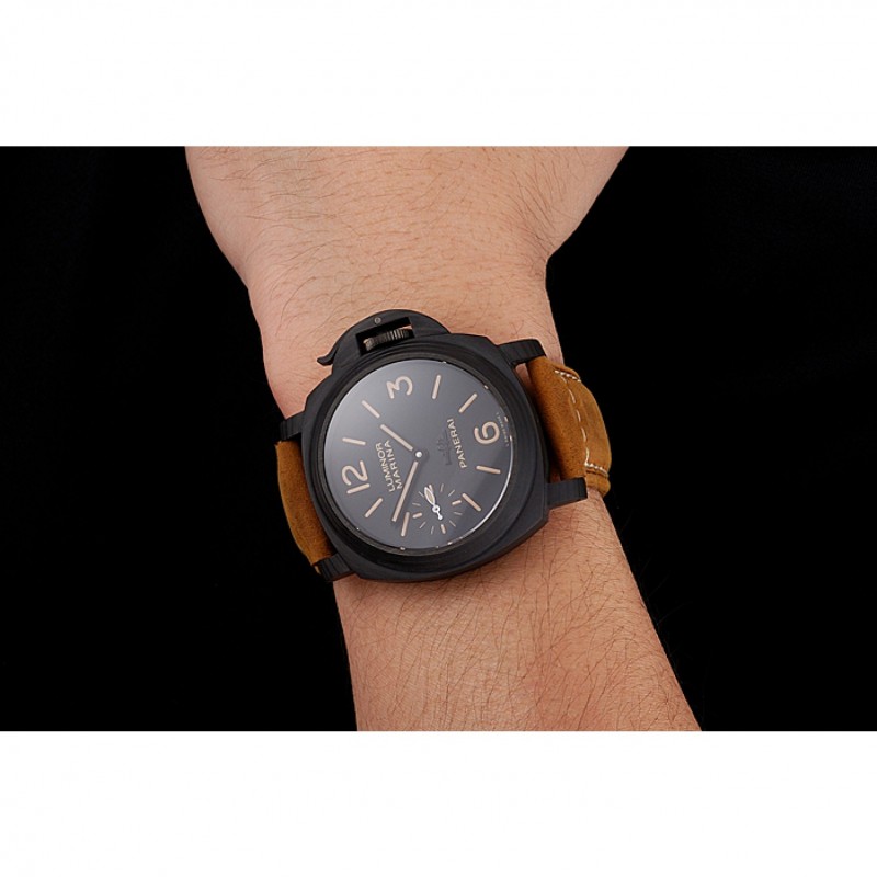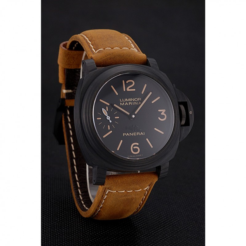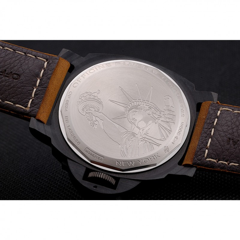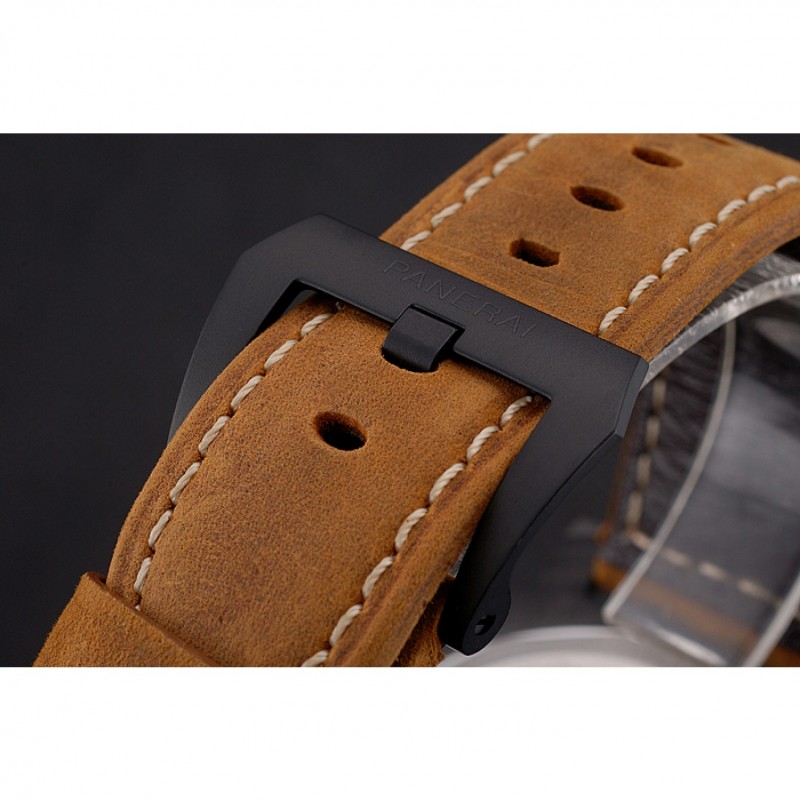 pulsera: correa de cuero marrón Officine Panerai calor en relieve con Panerai grabado ion -plated gancho hebilla de cierre