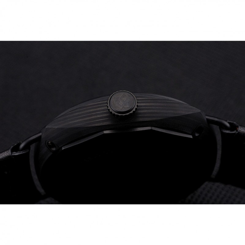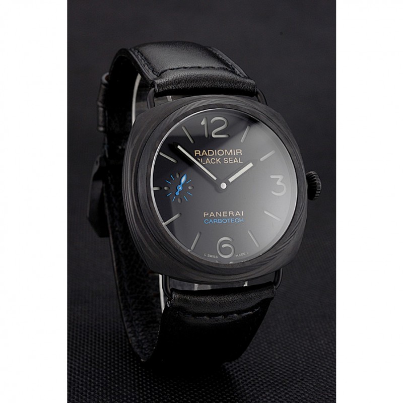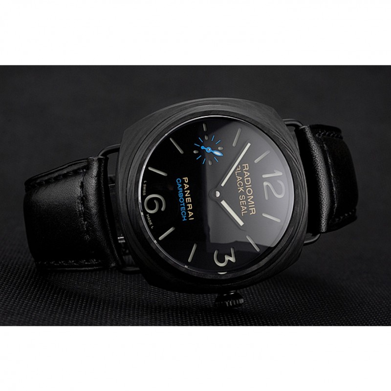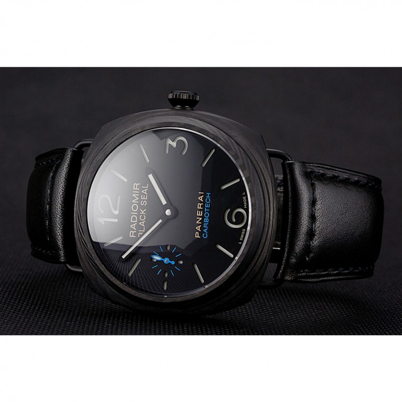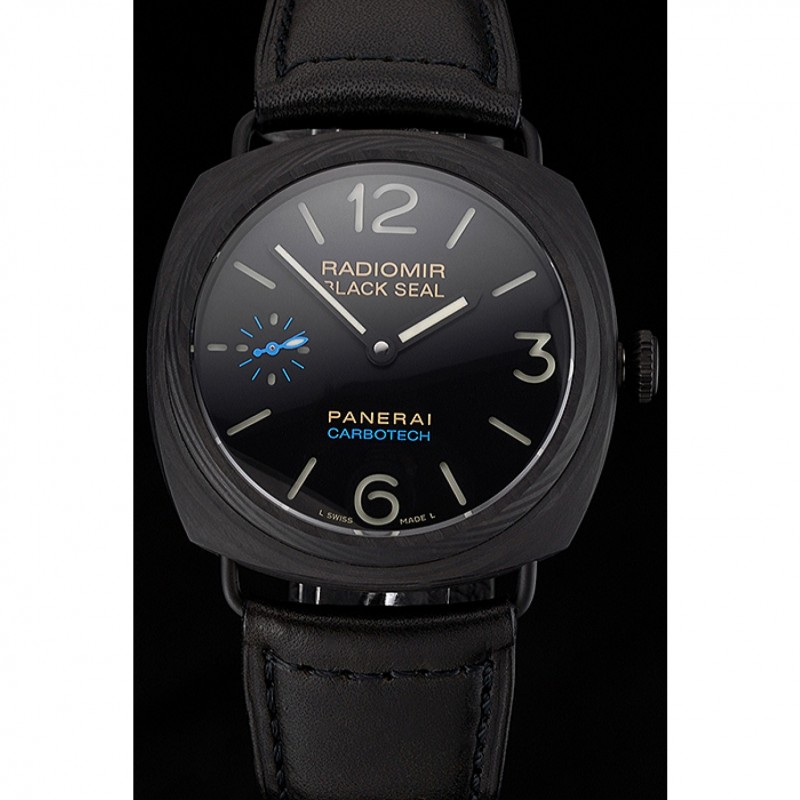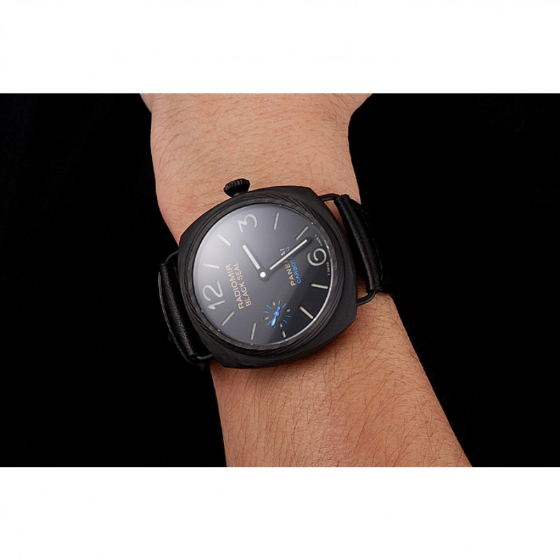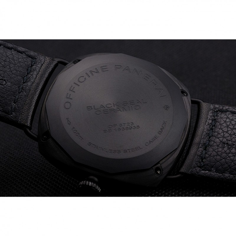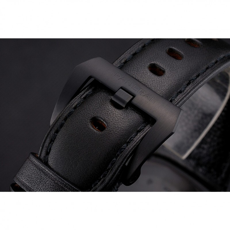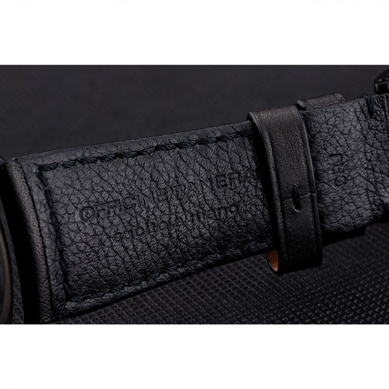 pulsera: correa de cuero negro en relieve calor Officine Panerai con Panerai grabado ion -plated gancho hebilla de cierre