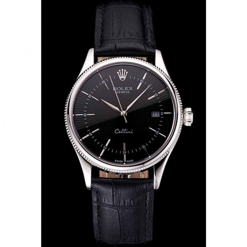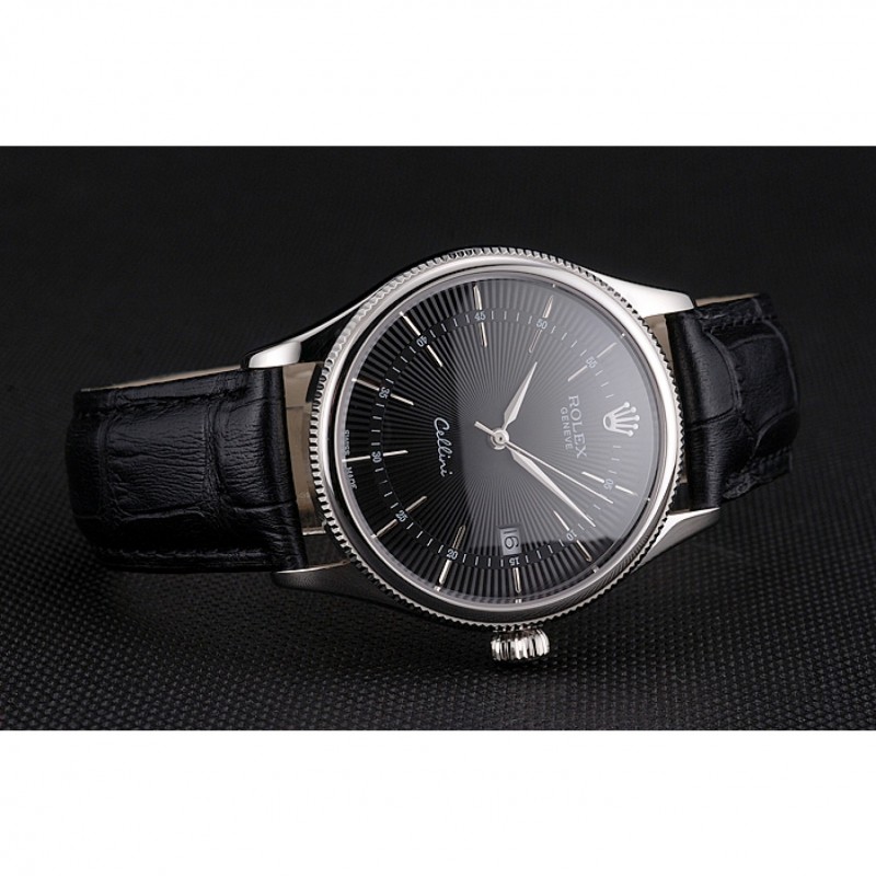 pulsera: correa de piel de cocodrilo negro Rolex y el logotipo en relieve de calor con el logotipo de Rolex tallado, pulido de acero inoxidable gancho hebilla de cierre