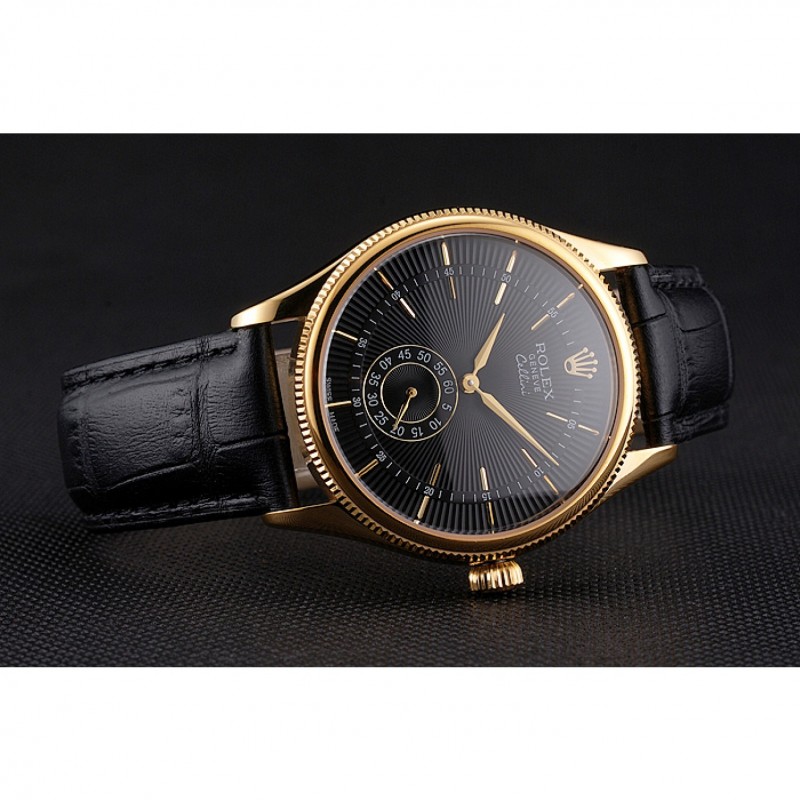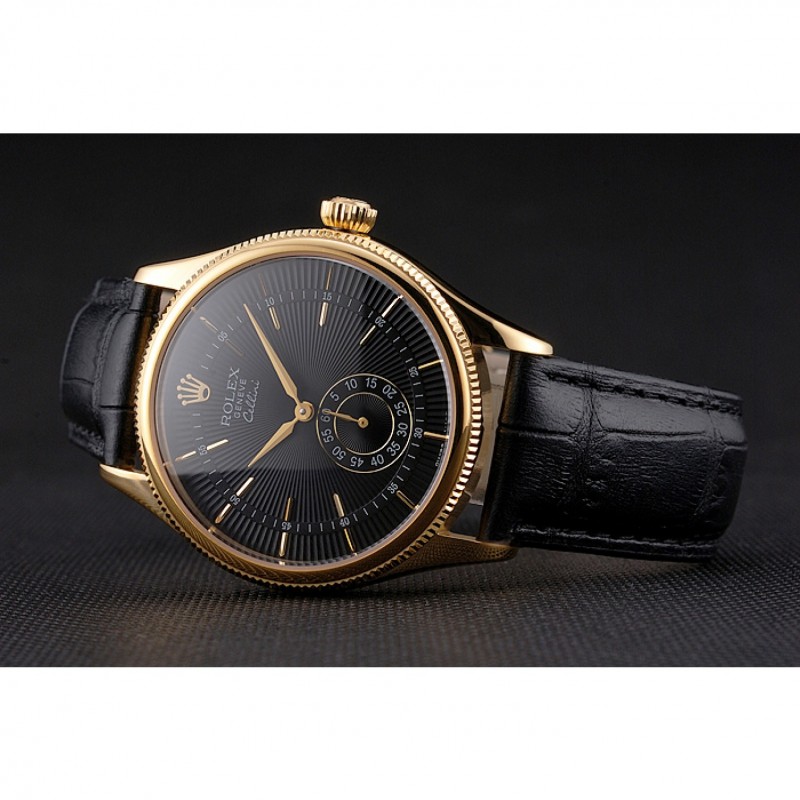 Inicio / Rolex / Cellini / Suiza Rolex Cellini Negro Dial correa de cuero de la caja Negro Oro