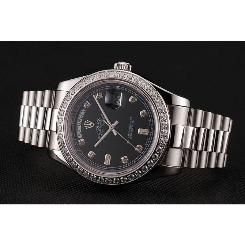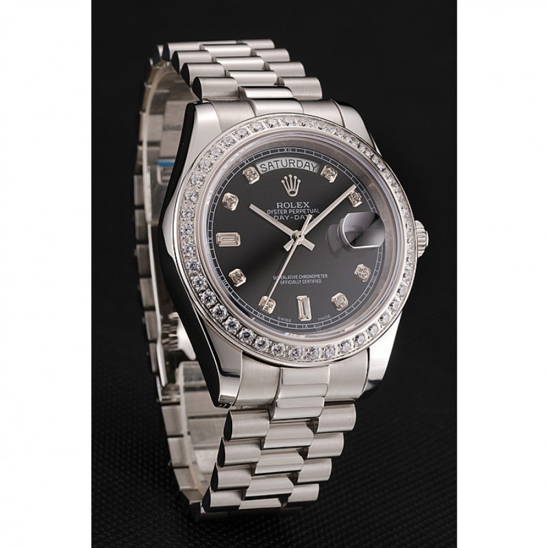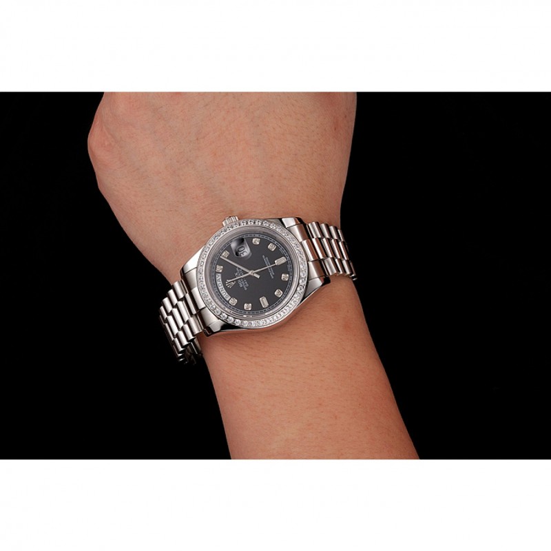 pulsera: cepillado y pulido inoxidable brazalete de acero de enlace con el logotipo de Rolex tallado cierre oculto