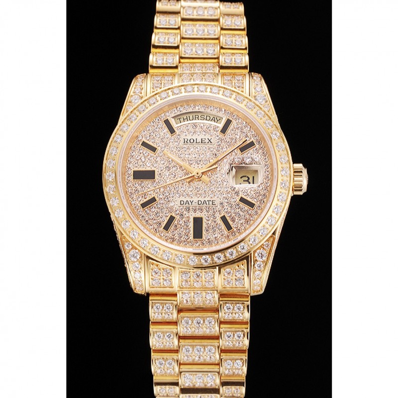 Inicio / Rolex / Daydate / Suiza Rolex Fecha Día Diamante completo oro amarillo Pave