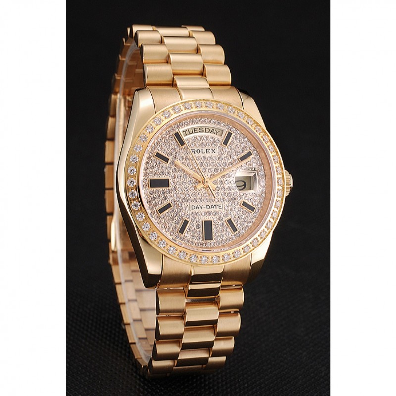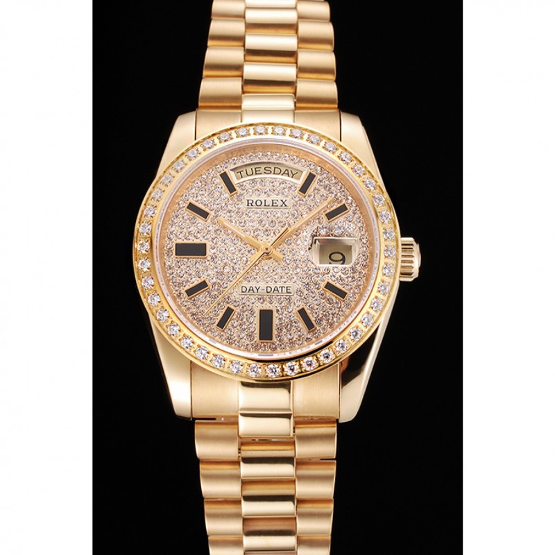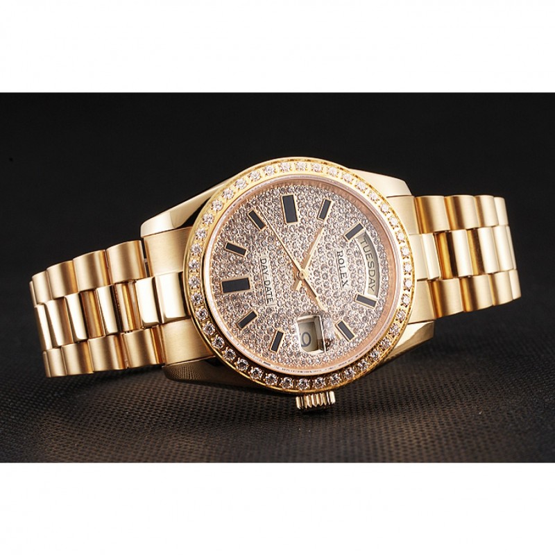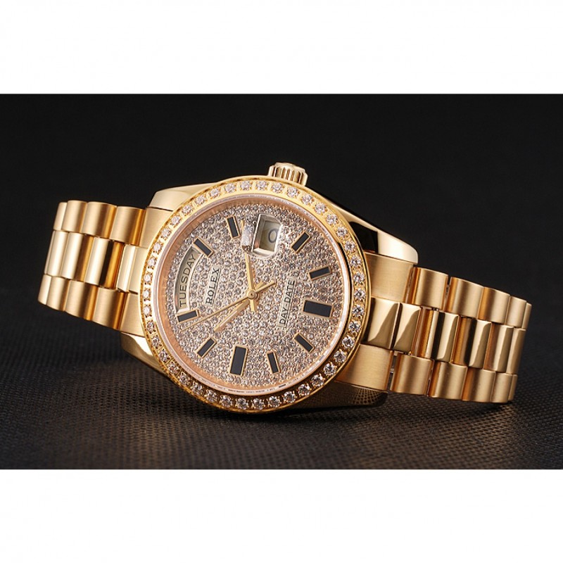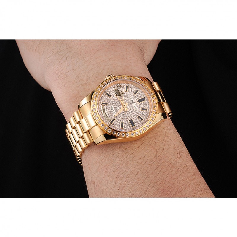 Inicio / Rolex / Daydate / Suiza Rolex Fecha Día Diamante Pave esfera y la caja bisel de oro y pulsera