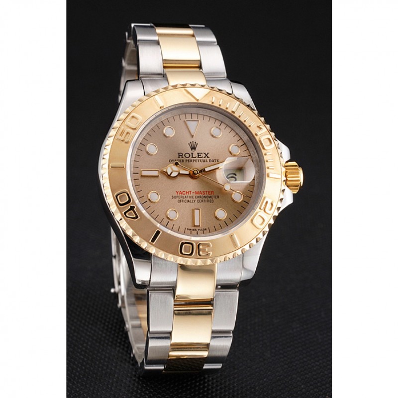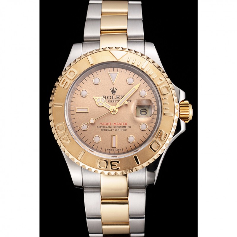 Inicio / Rolex / Yachtmaster / Suiza Rolex Yacht-Master Champagne Dial Caja de acero inoxidable bisel de oro pulsera de dos tonos
