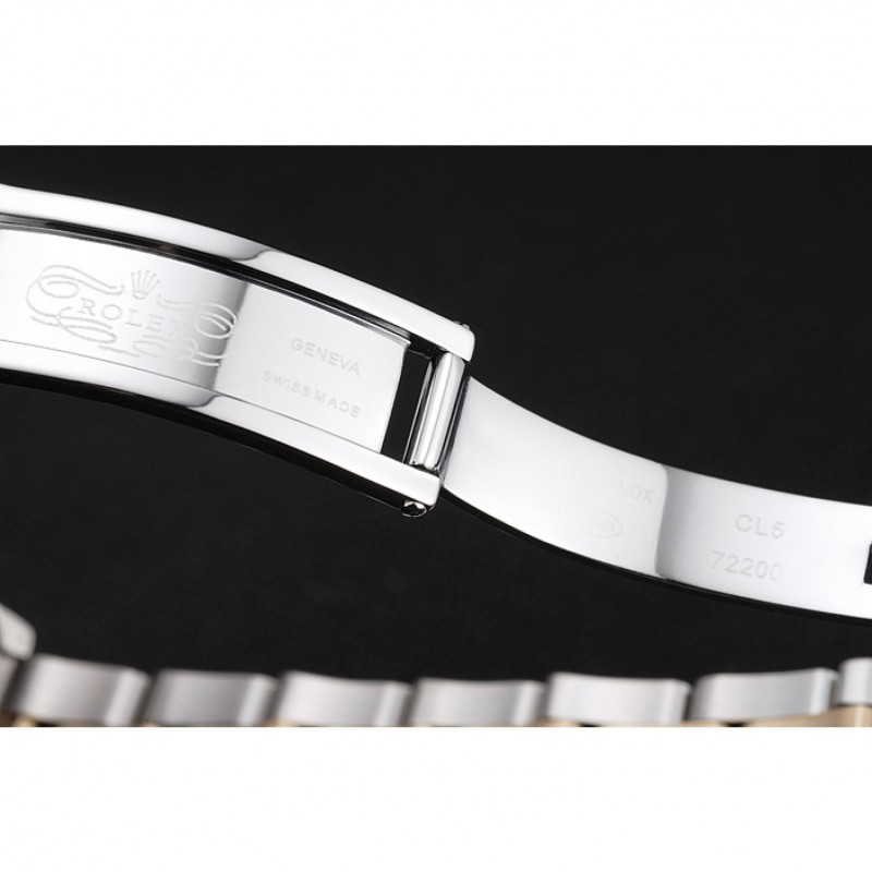 pulsera: acero inoxidable pulido y rosa de 18 quilates chapado en oro brazalete de eslabones de rosa de 18 quilates chapado en oro logotipo de Rolex tallado hebilla de despliegue