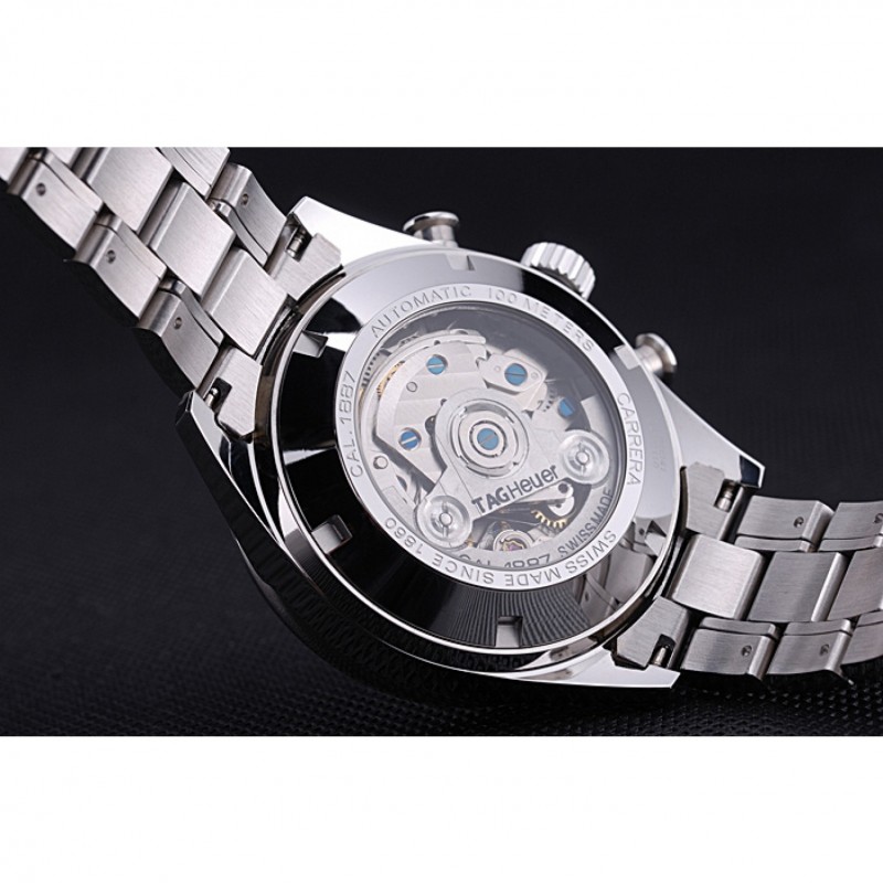 Volver: pulido Snap acero inoxidable en la parte trasera con la mecánica que revelan centro transparente y Tag grabados Heuer Carrera