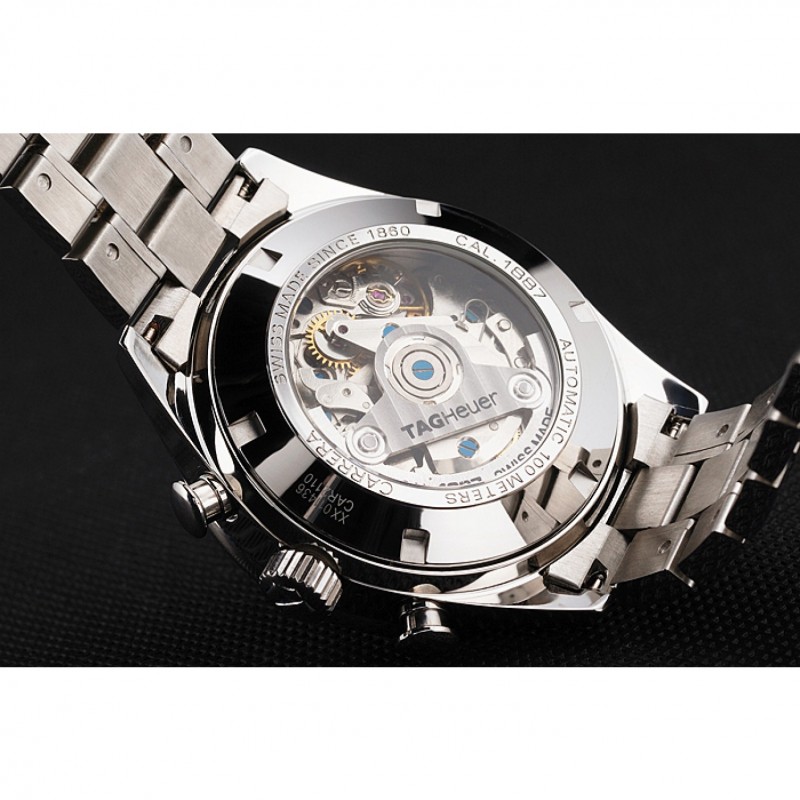 Volver: pulido Snap acero inoxidable en la parte trasera con la mecánica que revelan centro transparente y Tag grabados Heuer Carrera