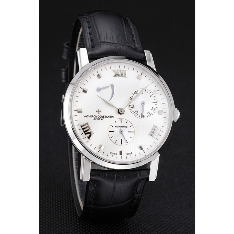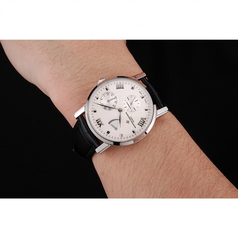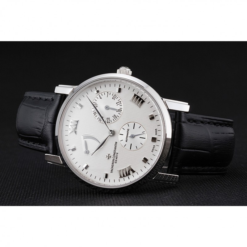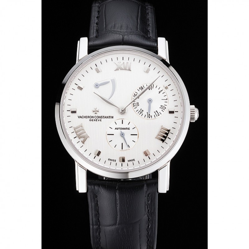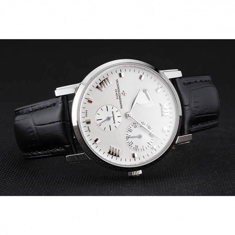 Inicio / Vacheron Constantin / Suiza Vacheron Constantin Patrimonio Quantième Reserva de Marche Blanco Dial correa de cuero caja de acero inoxidable Negro